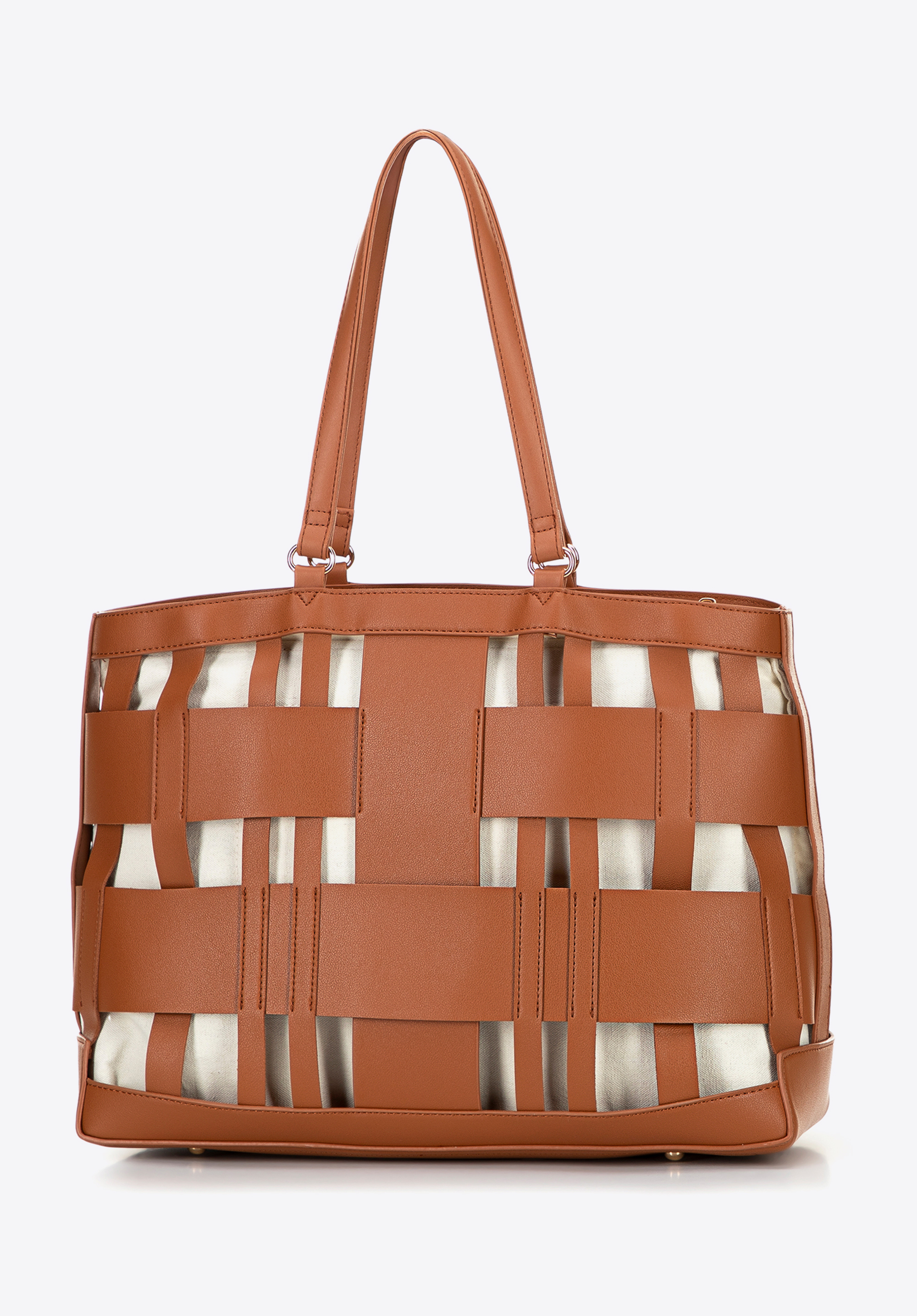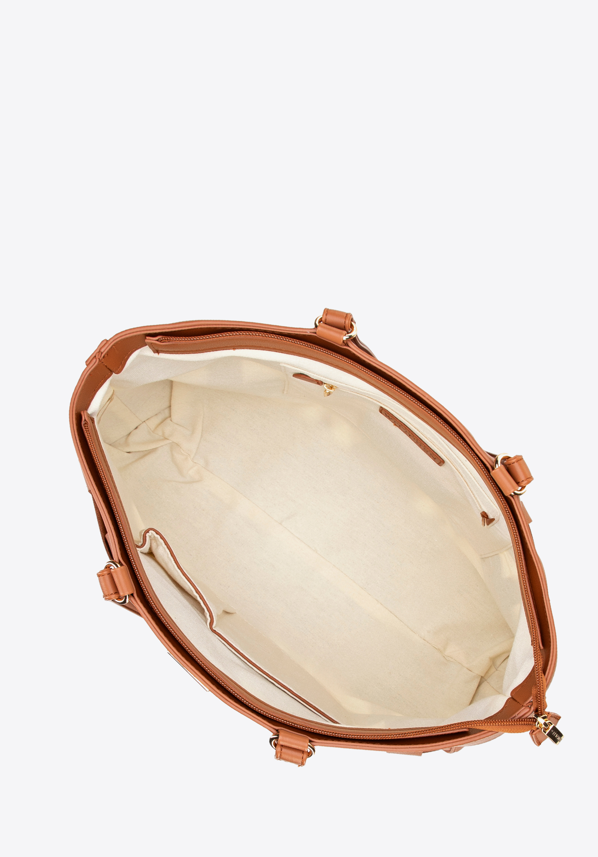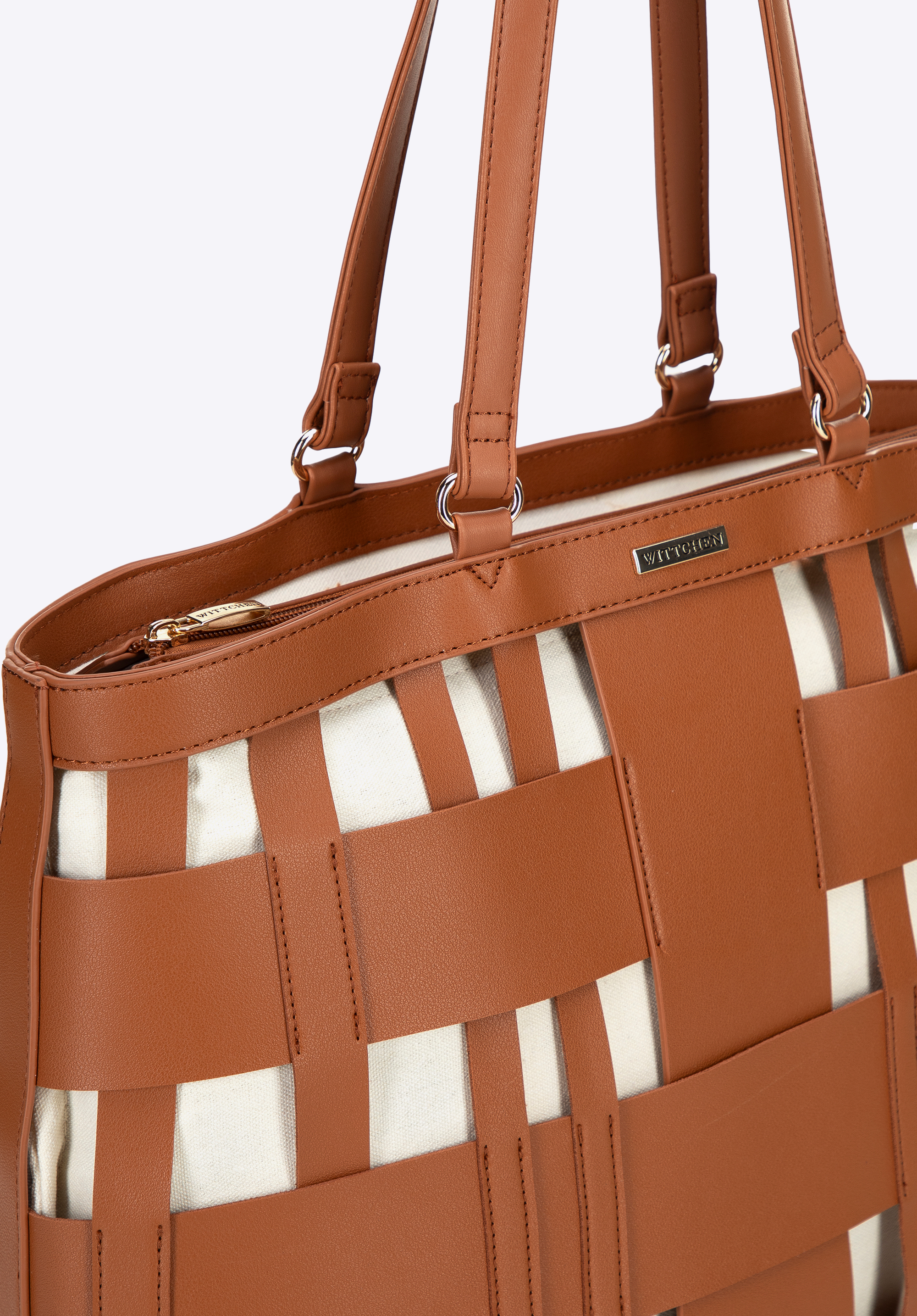 Elegáns shoppertáskánk ötvözi a funkcionalitást a divatos dizájnnal. Ökobőrből készült, cipzárral záródó, gondoskodik a holmijaid biztonságáról. A táska két kényelmes fogantyúval van ellátva, amelyek lehetővé teszik, hogy a válladon vagy kézben hordozd. Belsejét a rendezettség jegyében alakítottuk ki - három praktikus zseb segít a könnyű rendszerezésben, amelyek közül az egyik cipzáras.
