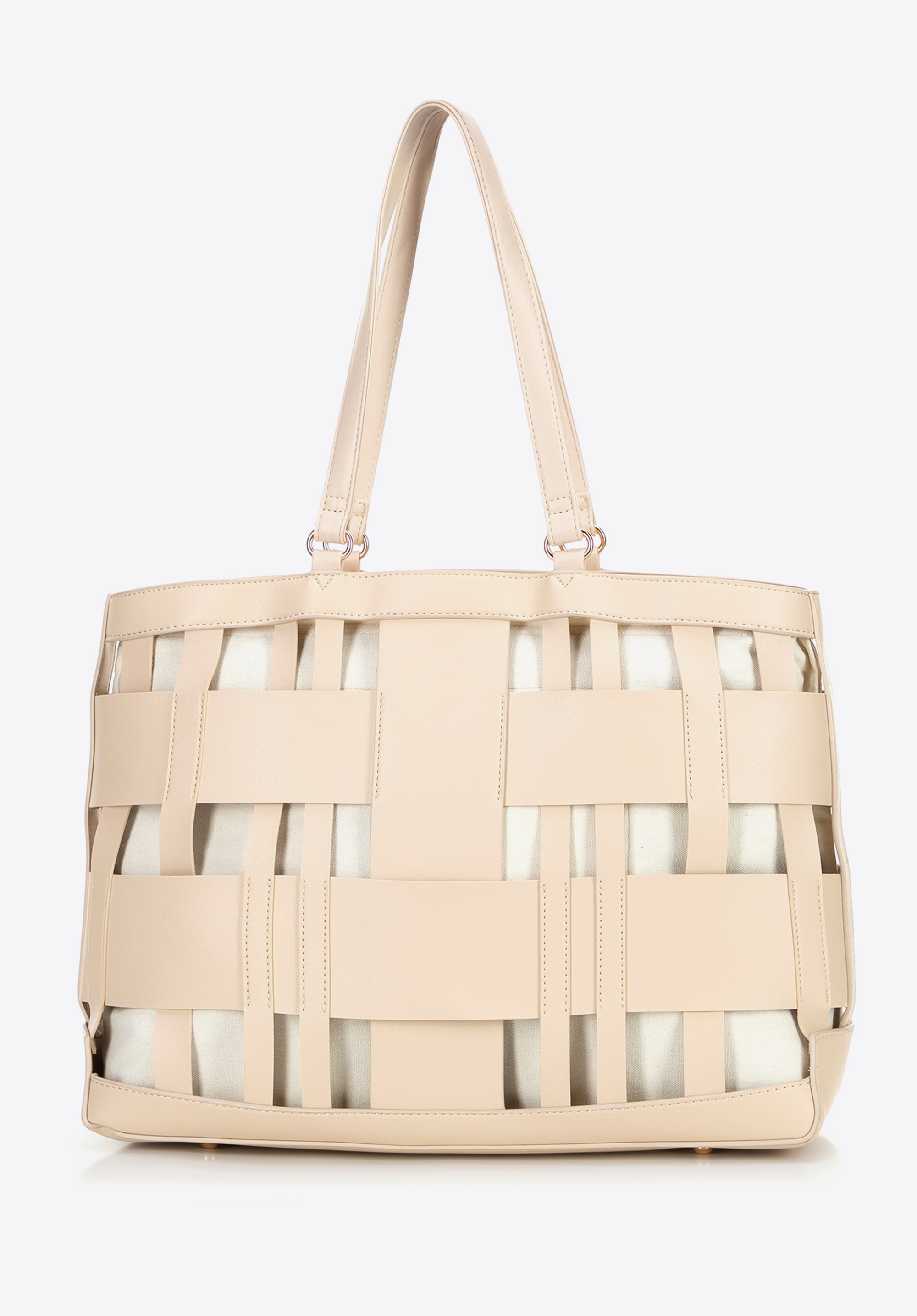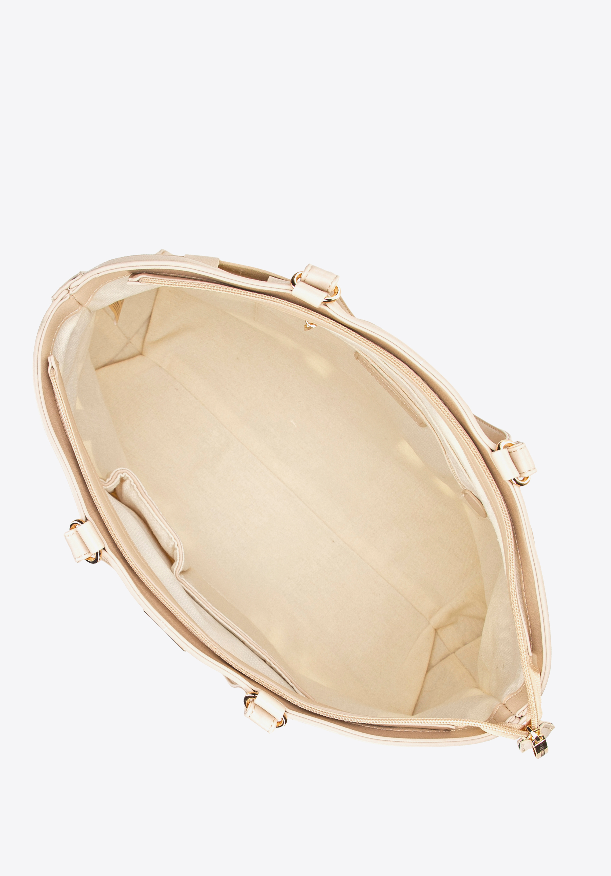 Elegáns shoppertáskánk ötvözi a funkcionalitást a divatos dizájnnal. Ökobőrből készült, cipzárral záródó, gondoskodik a holmijaid biztonságáról. A táska két kényelmes fogantyúval van ellátva, amelyek lehetővé teszik, hogy a válladon vagy kézben hordozd. Belsejét a rendezettség jegyében alakítottuk ki - három praktikus zseb segít a könnyű rendszerezésben, amelyek közül az egyik cipzáras.