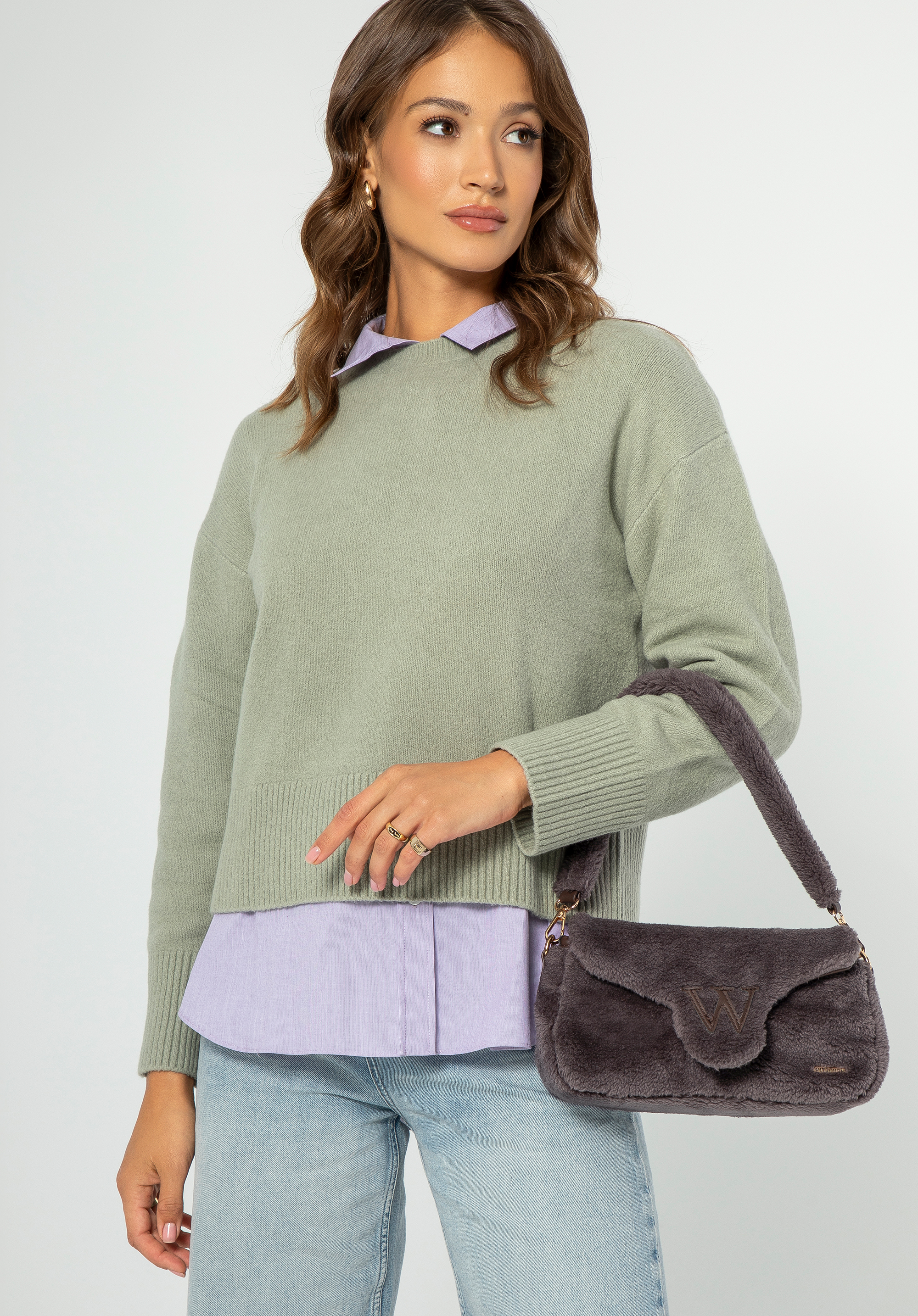 Tanácsunk: Kombináld farmernadrággal és egy egyszerű pulóverrel a hétköznapi megjelenés érdekében. A prémes pánt egy csipet luxust ad, és a karon is viselhető, ha elegánsabb szettet szeretnél létrehozni.