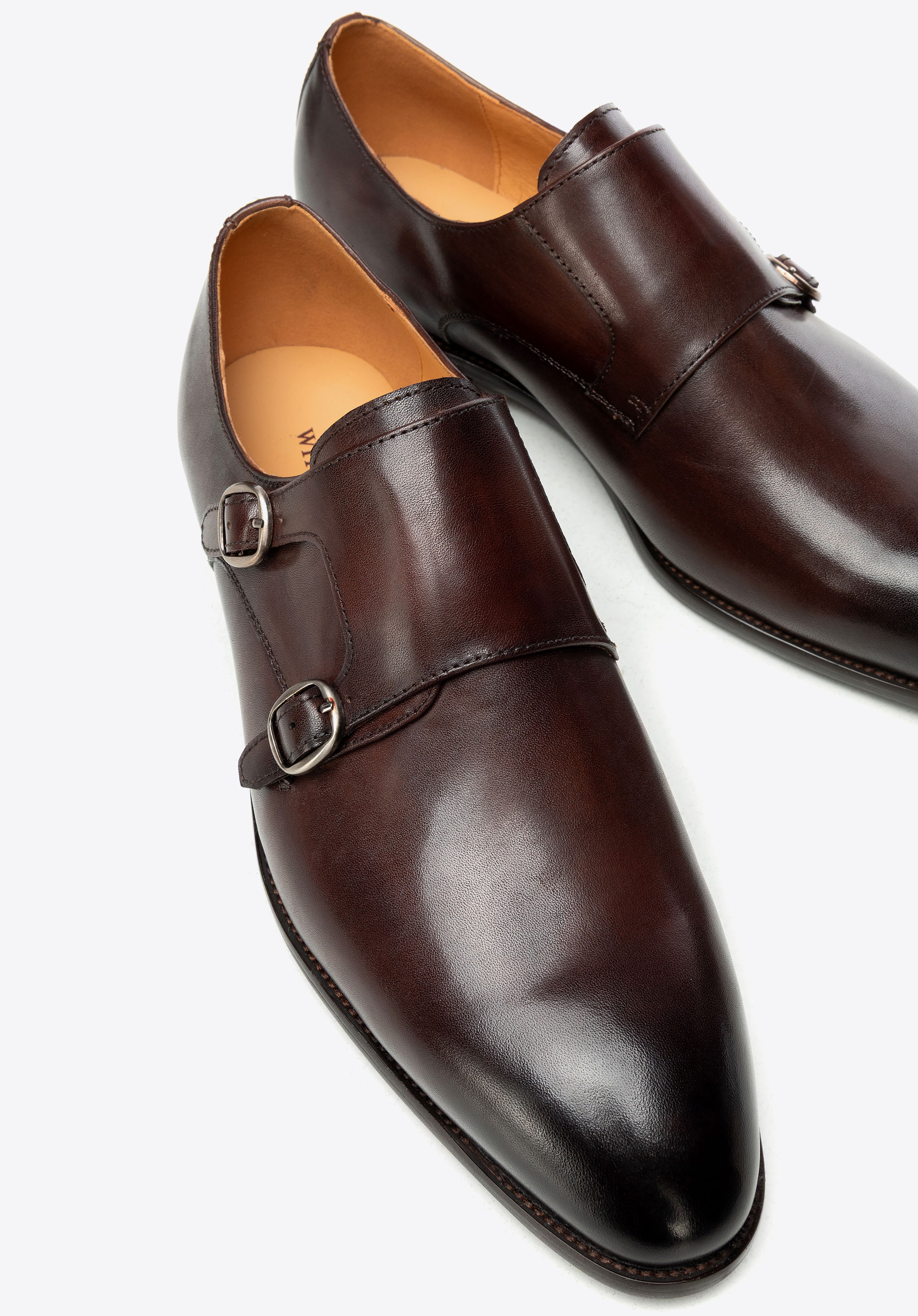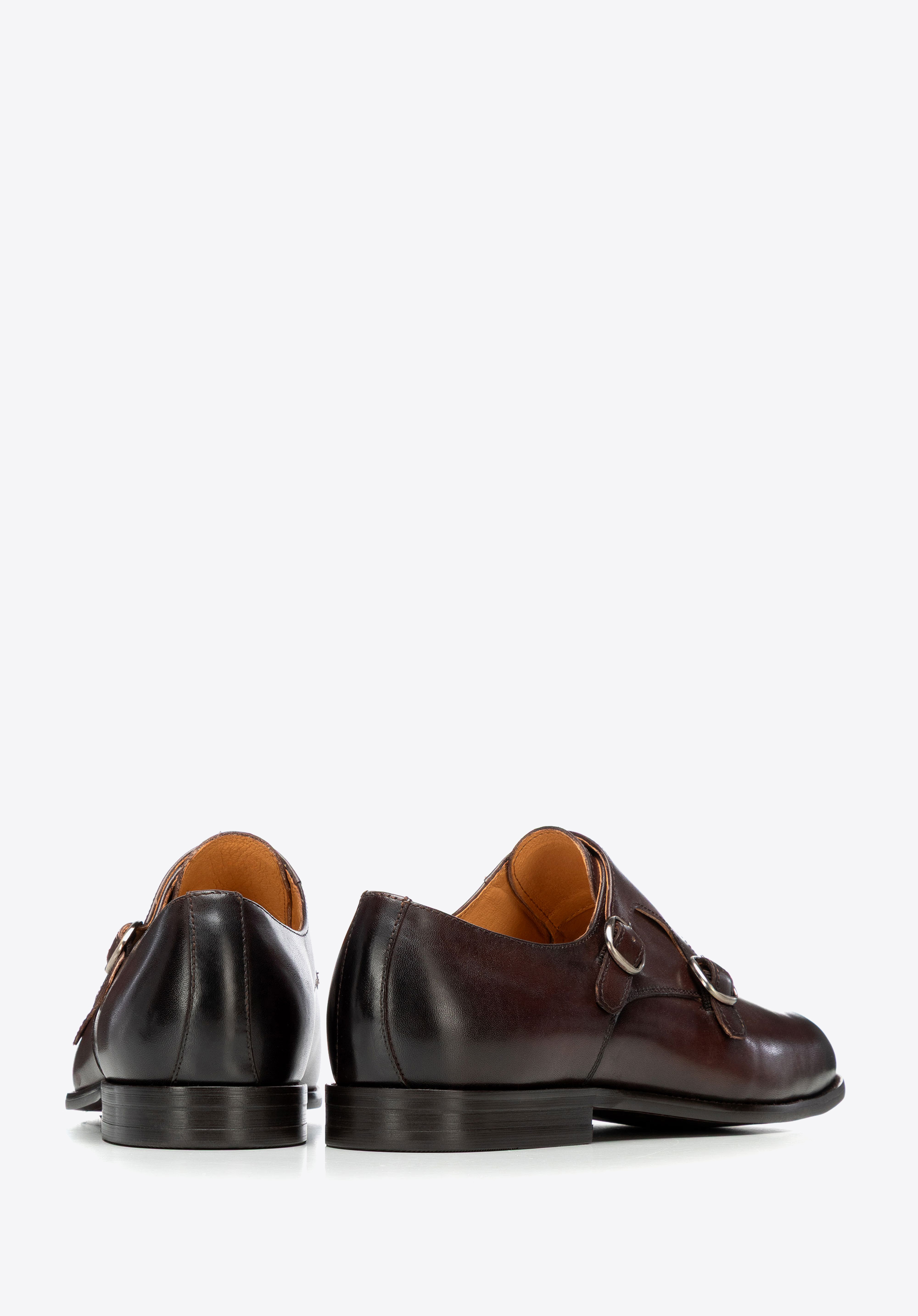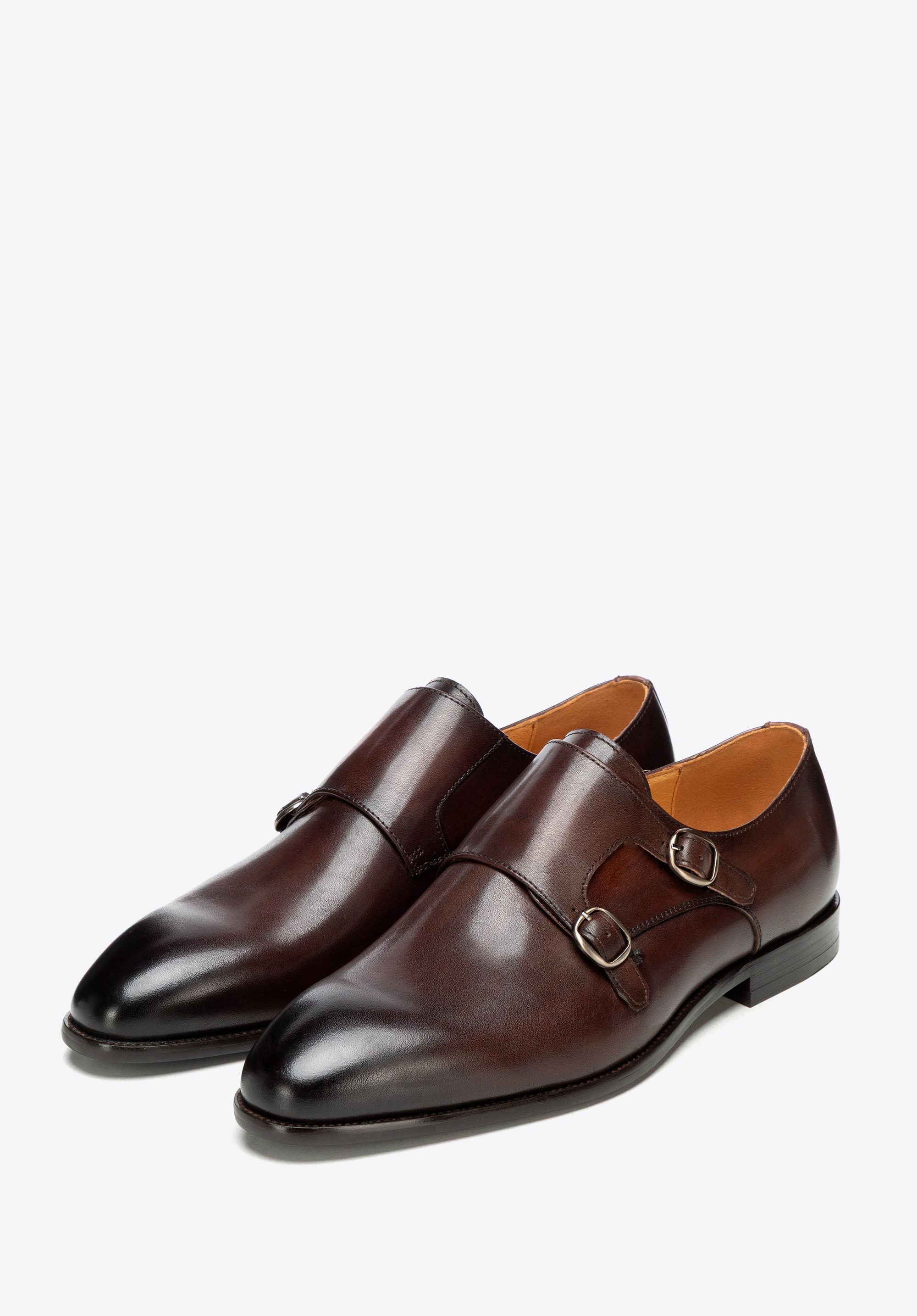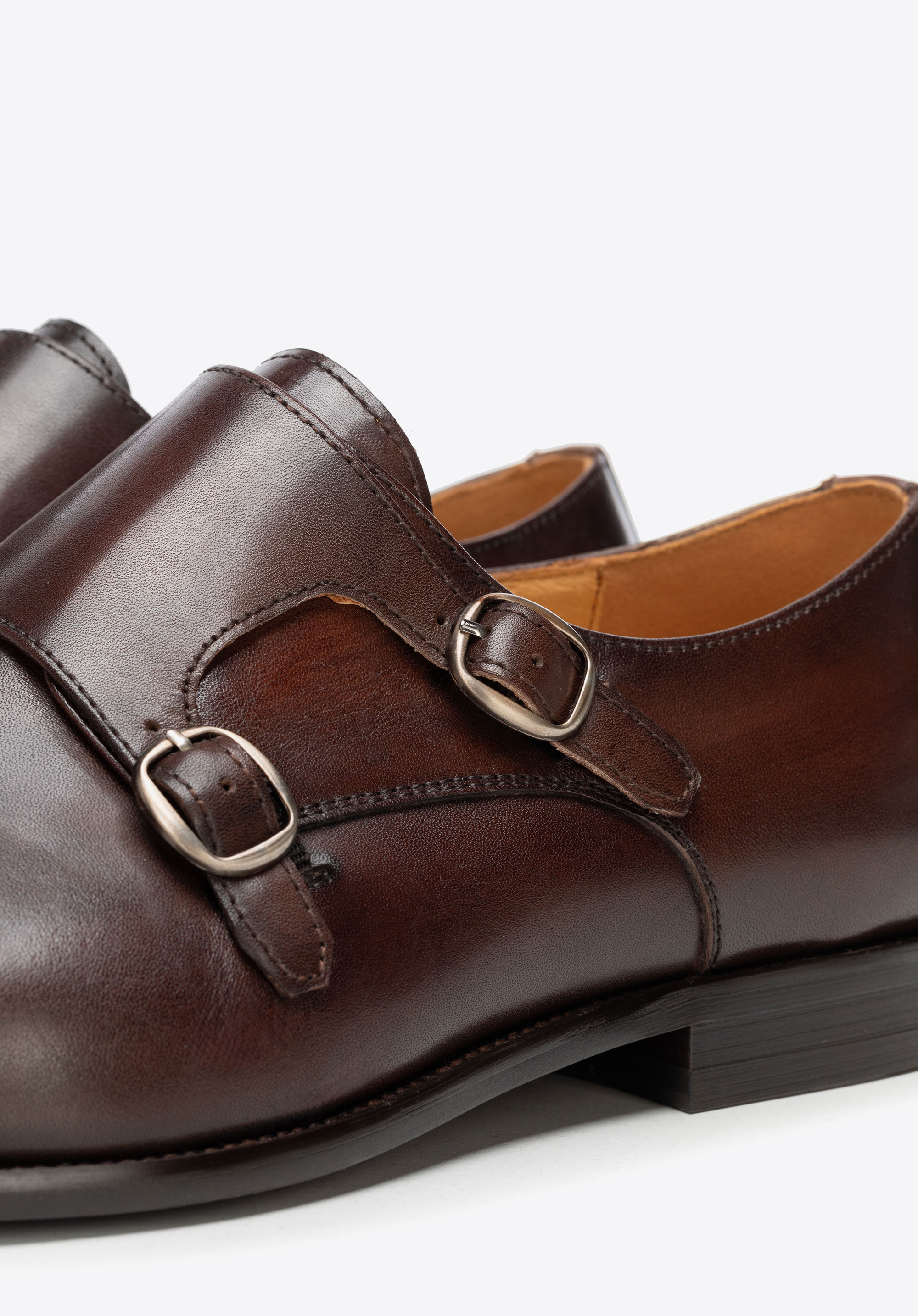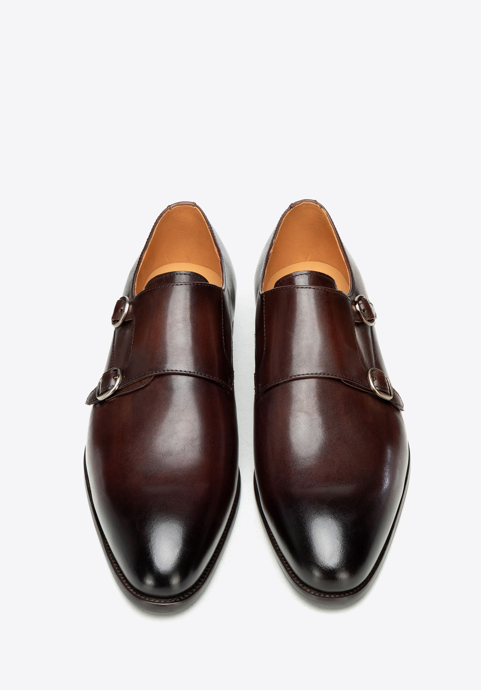 Természetes bőrből készült dupla csatos férfi cipő barna