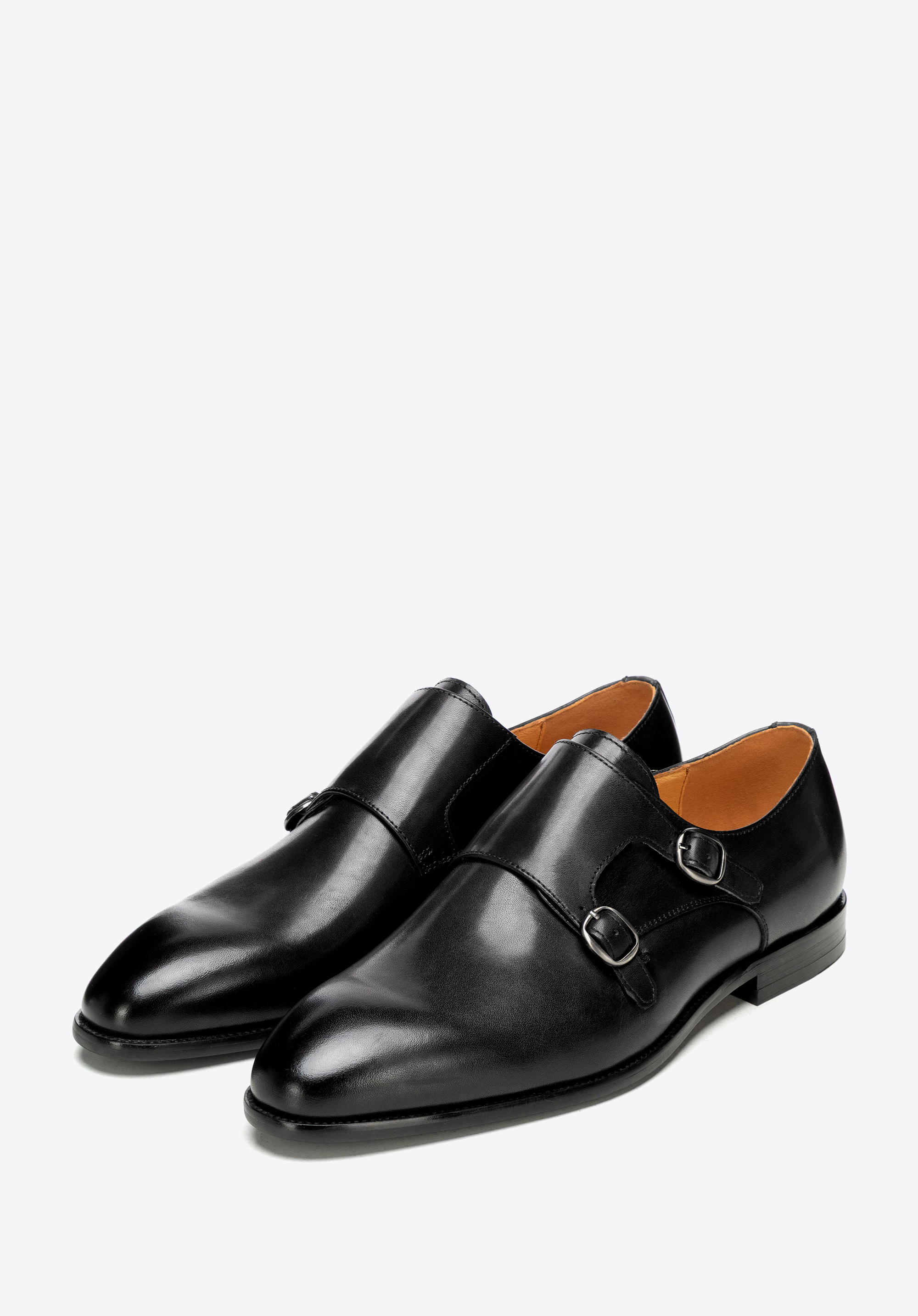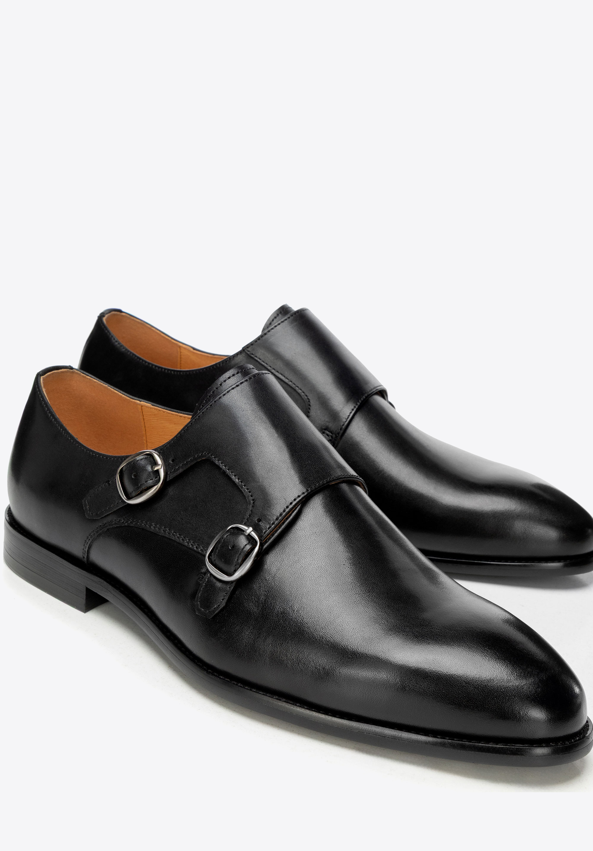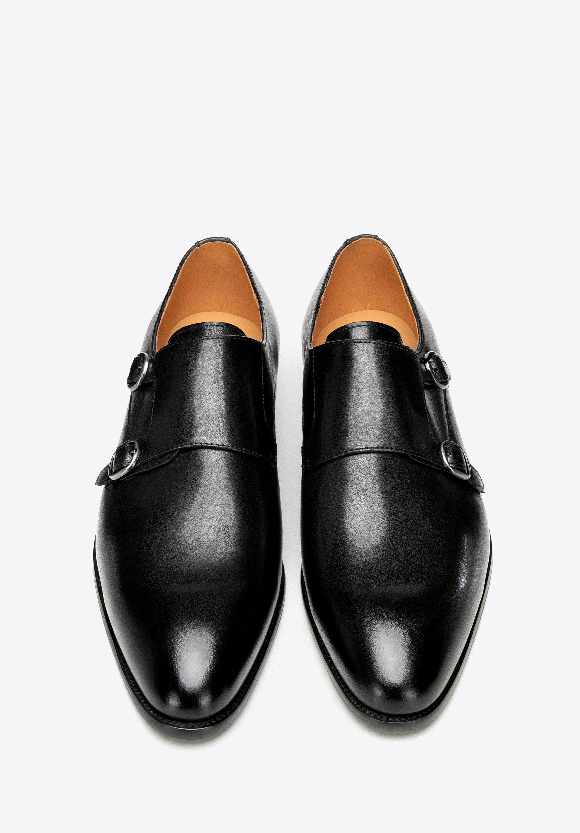 Természetes bőrből készült dupla csatos férfi cipő fekete