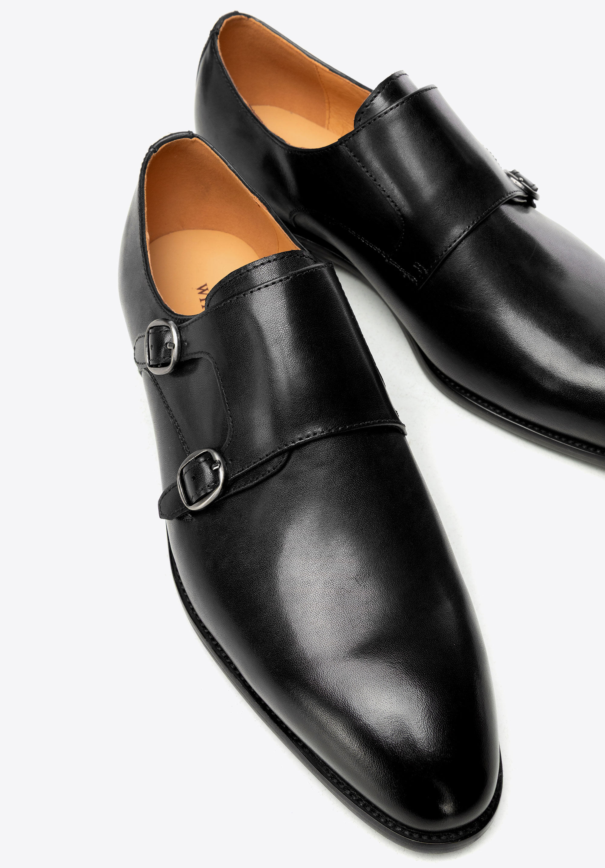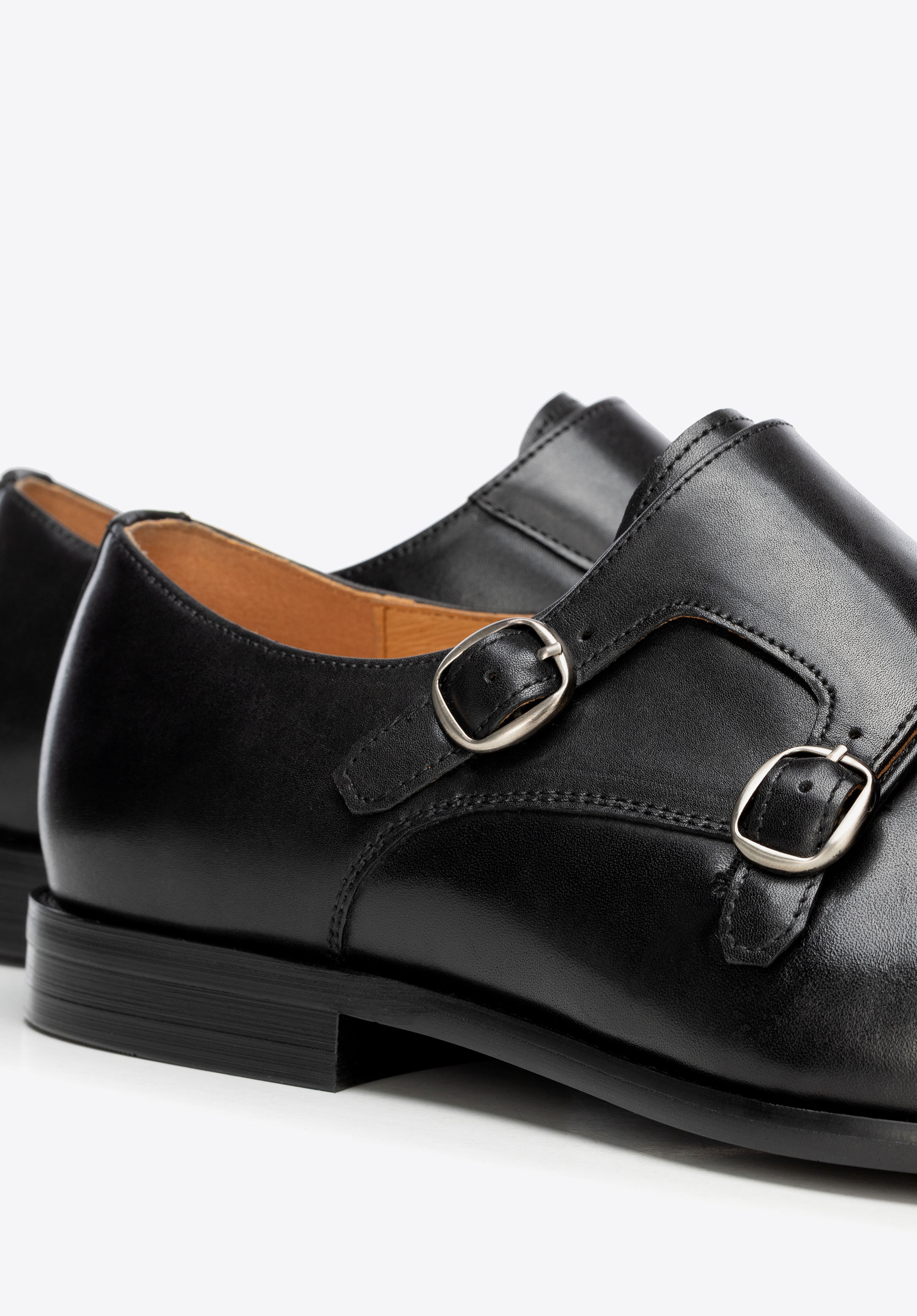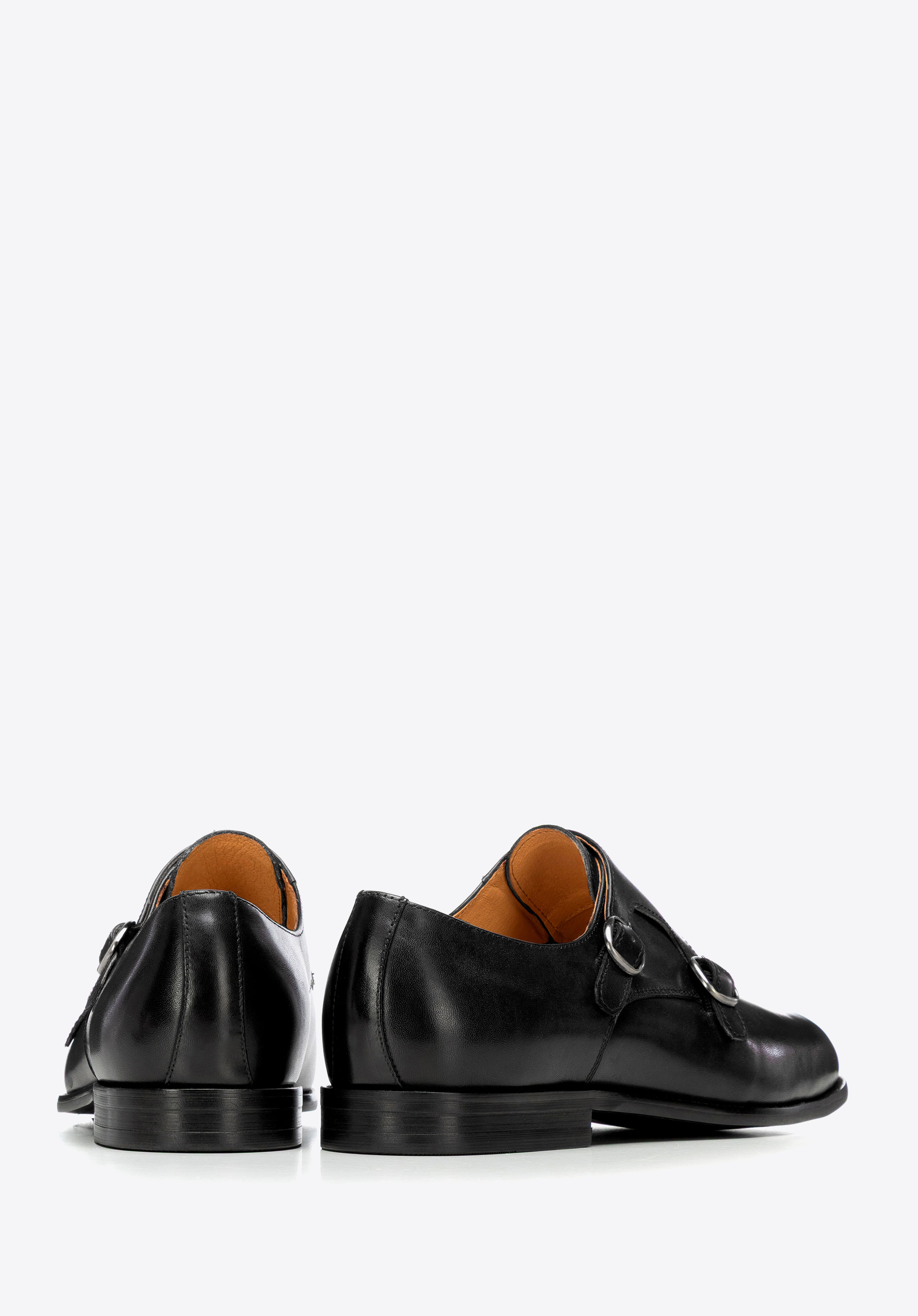 Természetes bőrből készült dupla csatos férfi cipő fekete