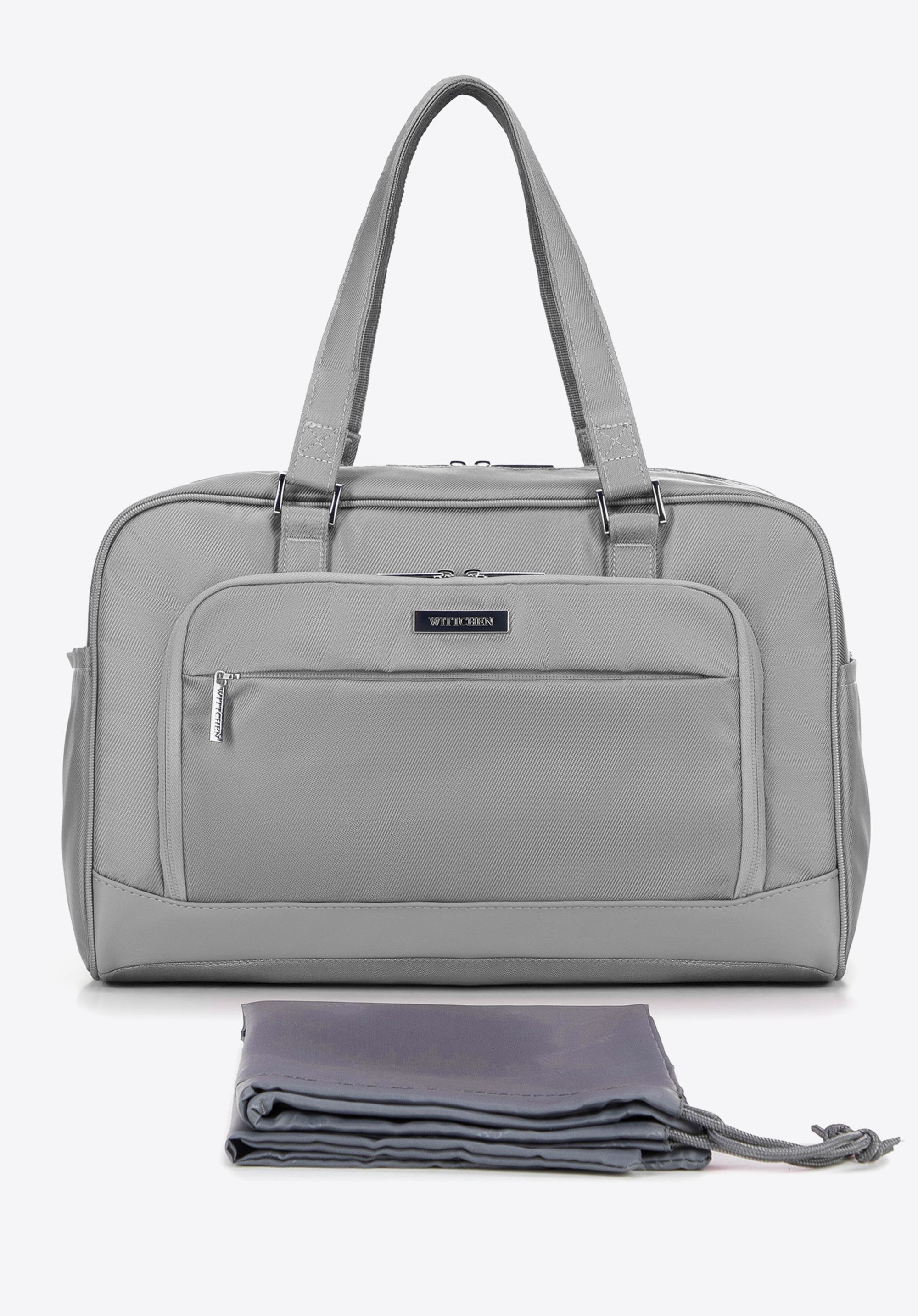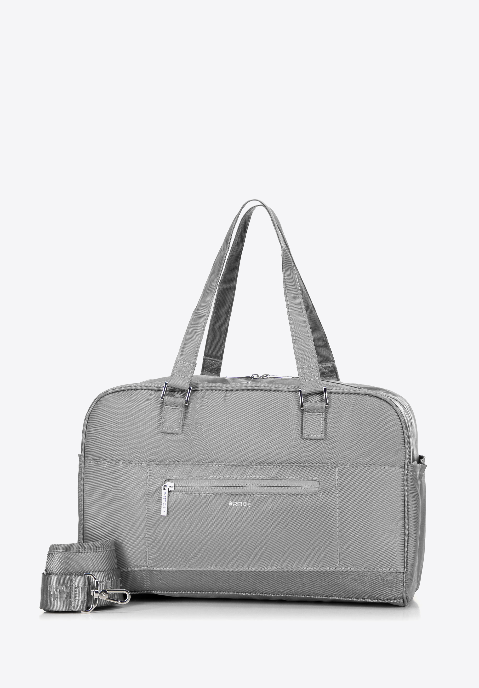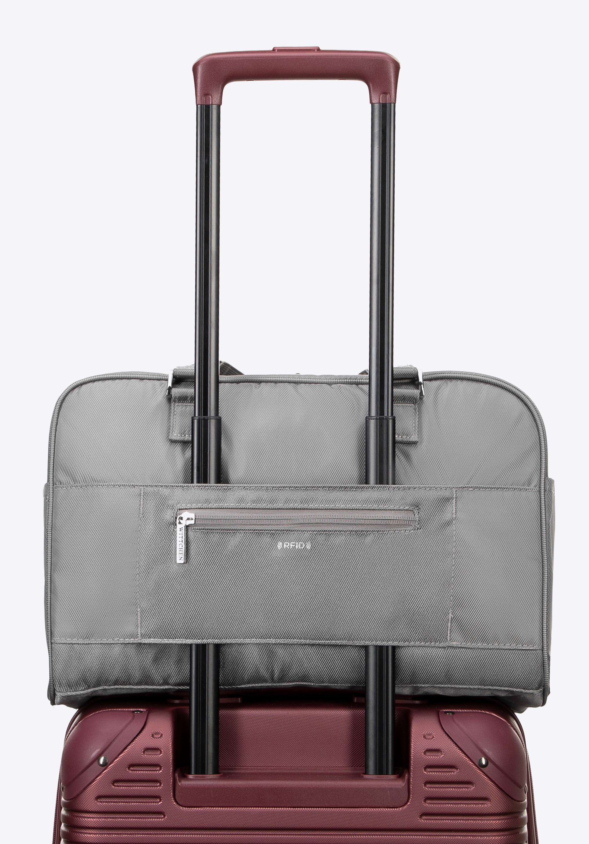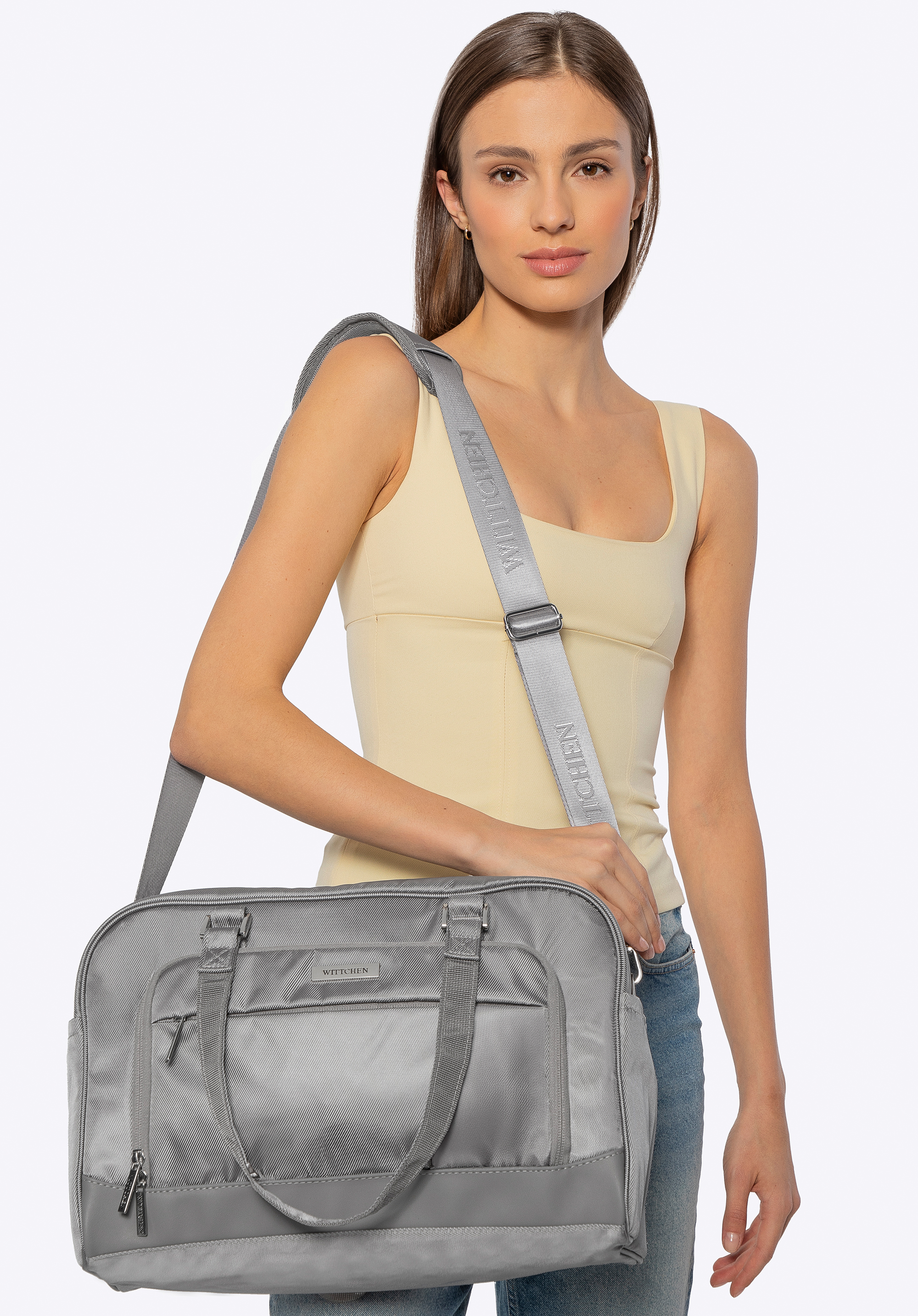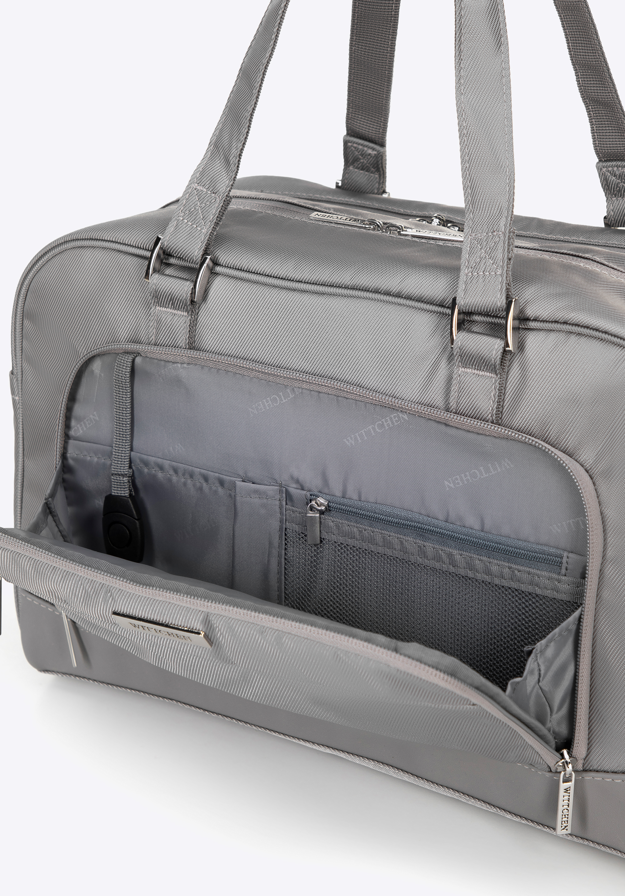Ez a funkcionális poggyász azért készült, hogy megkönnyítse utazásaidat. Egy különálló, puha bélésű rekeszben maximum 36 x 22 cm méretű elektronikai eszköz szállítható. Ezen kívül a táska egy nagy rekesszel rendelkezik, amibe könnyedén elhelyezheted a hétvégi kiránduláshoz szükséges személyes holmikat. Belül további kiegészítőket találsz: egy húzózsinóros táskát - tökéletes ruhák vagy cipők mosására - és egy levehető átlátszó tasakot. Számos zsebében pedig elférnek a szükséges apróságok. Az egyik külső zseb RFID kártya védelemmel rendelkezik, így pénztárcatartónak is tökéletes lesz. Az enyhe fényű bordázott felület foltálló, és gyorsan megszárad, ha vízzel érintkezik.