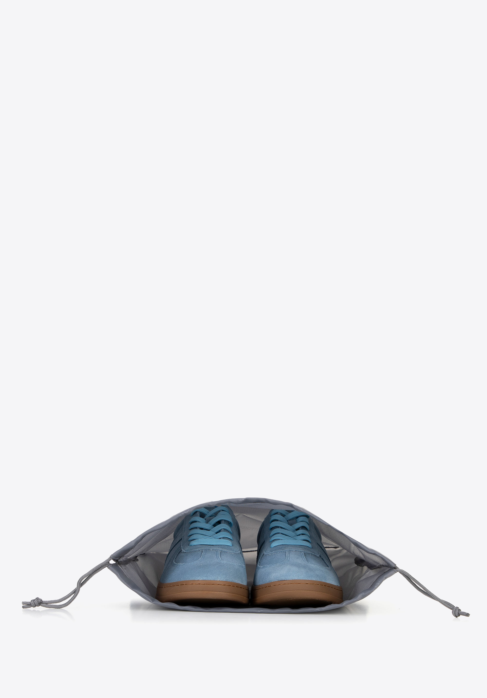 - a fő rekeszben: átlátszó műanyagból készült levehető tasak és szennyes- vagy cipőtasak;