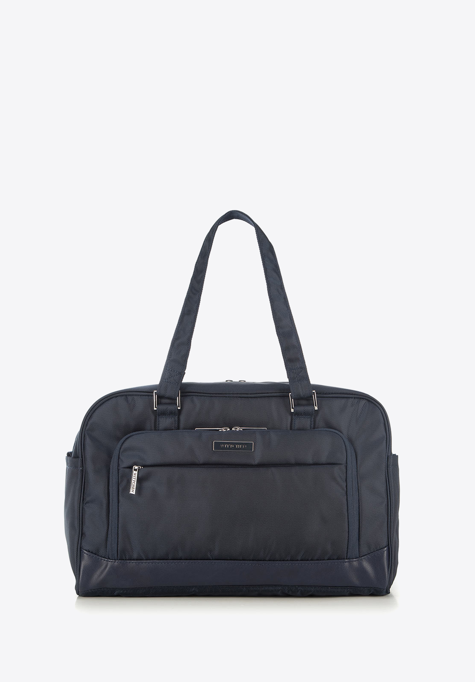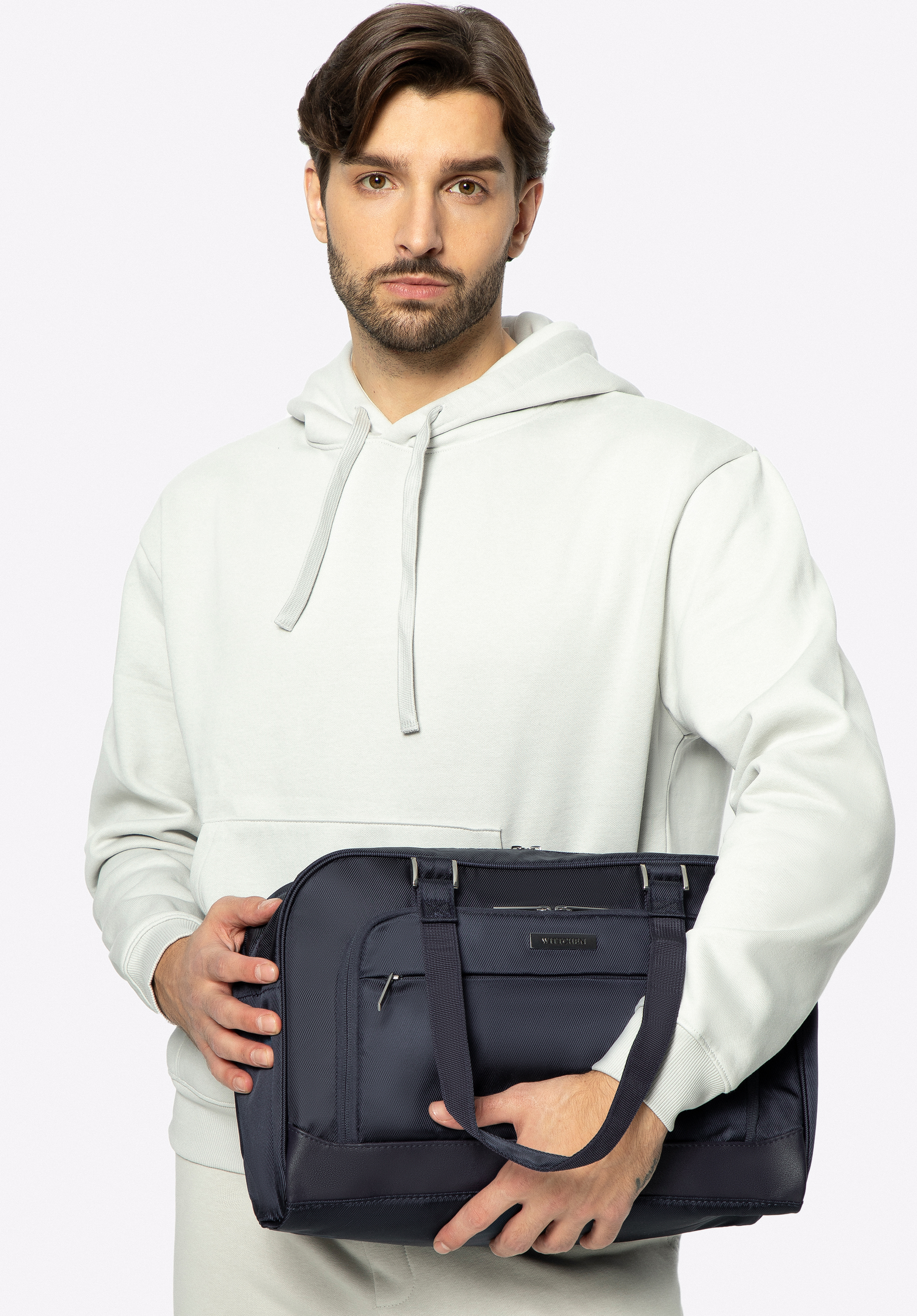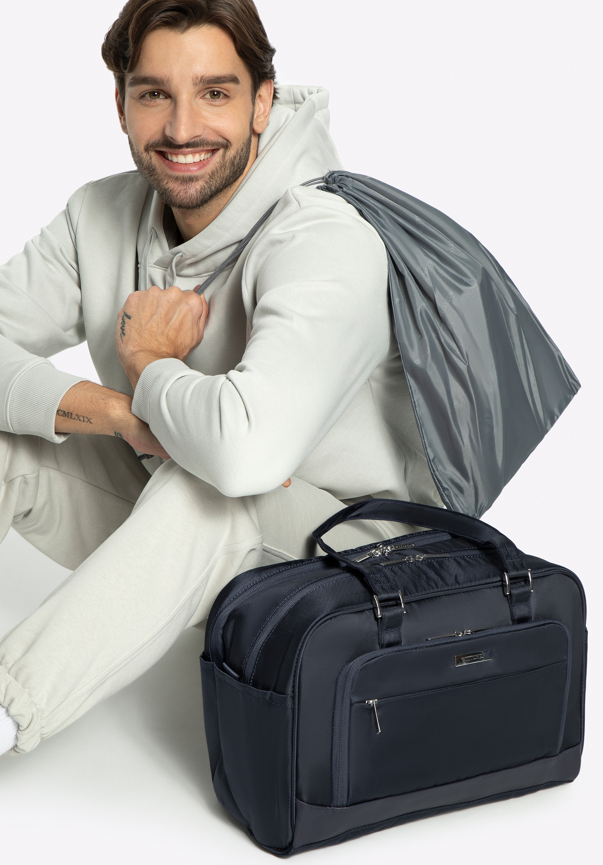Ez a funkcionális poggyász azért készült, hogy megkönnyítse utazásaidat. Egy különálló, puha bélésű rekeszben maximum 36 x 22 cm méretű elektronikai eszköz szállítható. Ezen kívül a táska egy nagy rekesszel rendelkezik, amibe könnyedén elhelyezheted a hétvégi kiránduláshoz szükséges személyes holmikat. Belül további kiegészítőket találsz: egy húzózsinóros táskát - tökéletes ruhák vagy cipők mosására - és egy levehető átlátszó tasakot. Számos zsebében pedig elférnek a szükséges apróságok. Az egyik külső zseb RFID kártya védelemmel rendelkezik, így pénztárcatartónak is tökéletes lesz. Az enyhe fényű bordázott felület foltálló, és gyorsan megszárad, ha vízzel érintkezik.