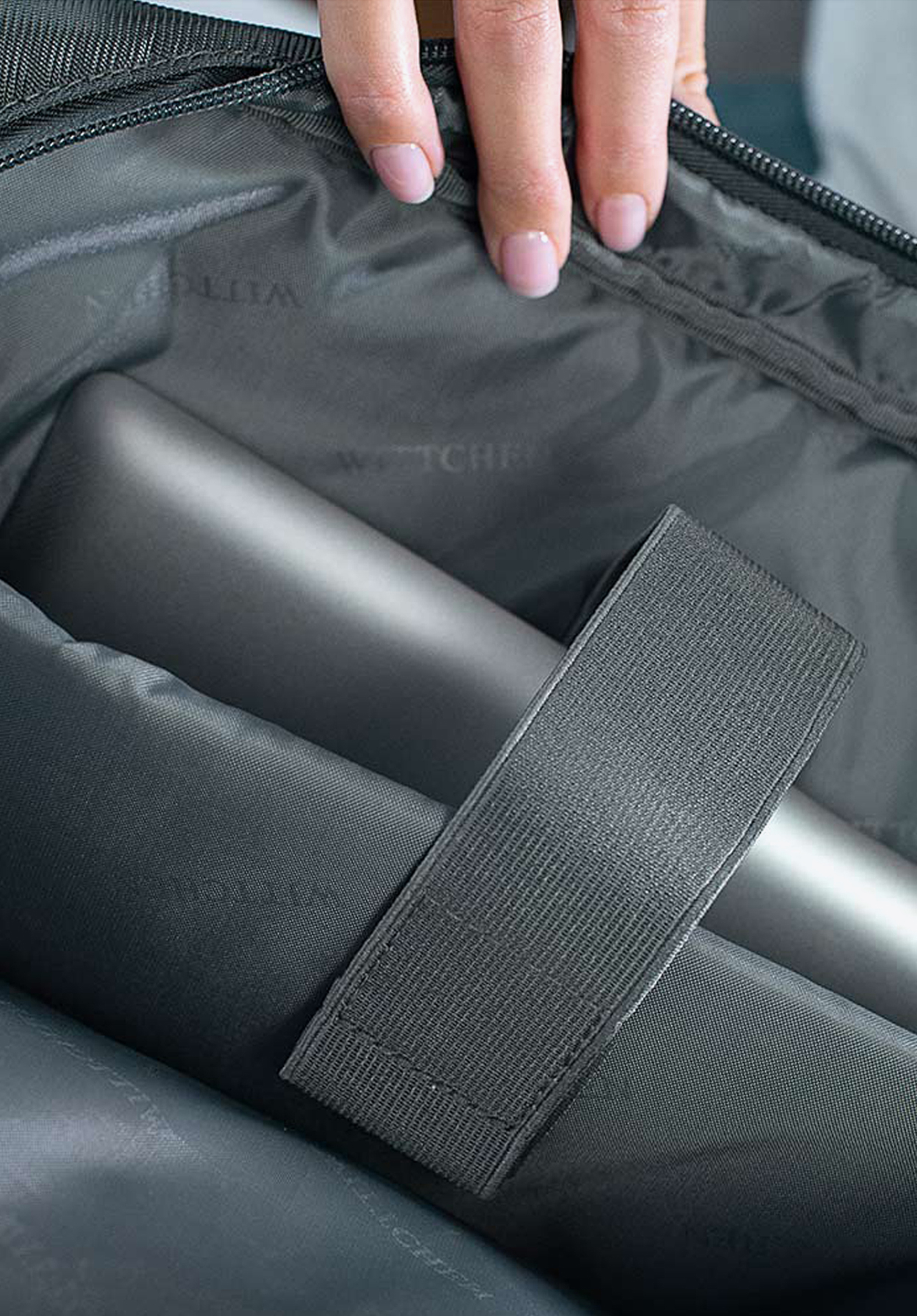 - a második rekeszben: rugalmas zseb az elektronikus eszköz számára, maximum 36 x 22 cm méretű.