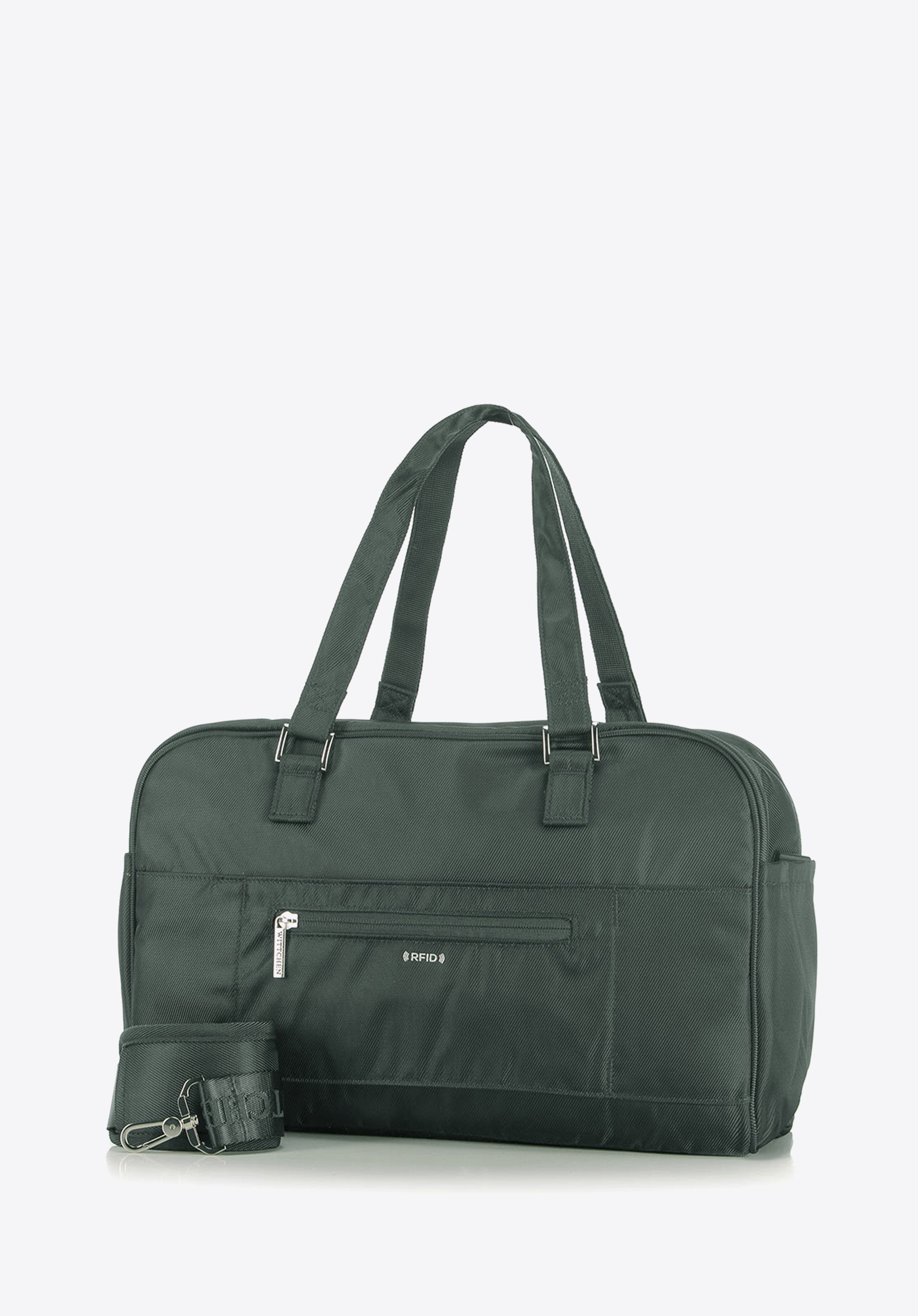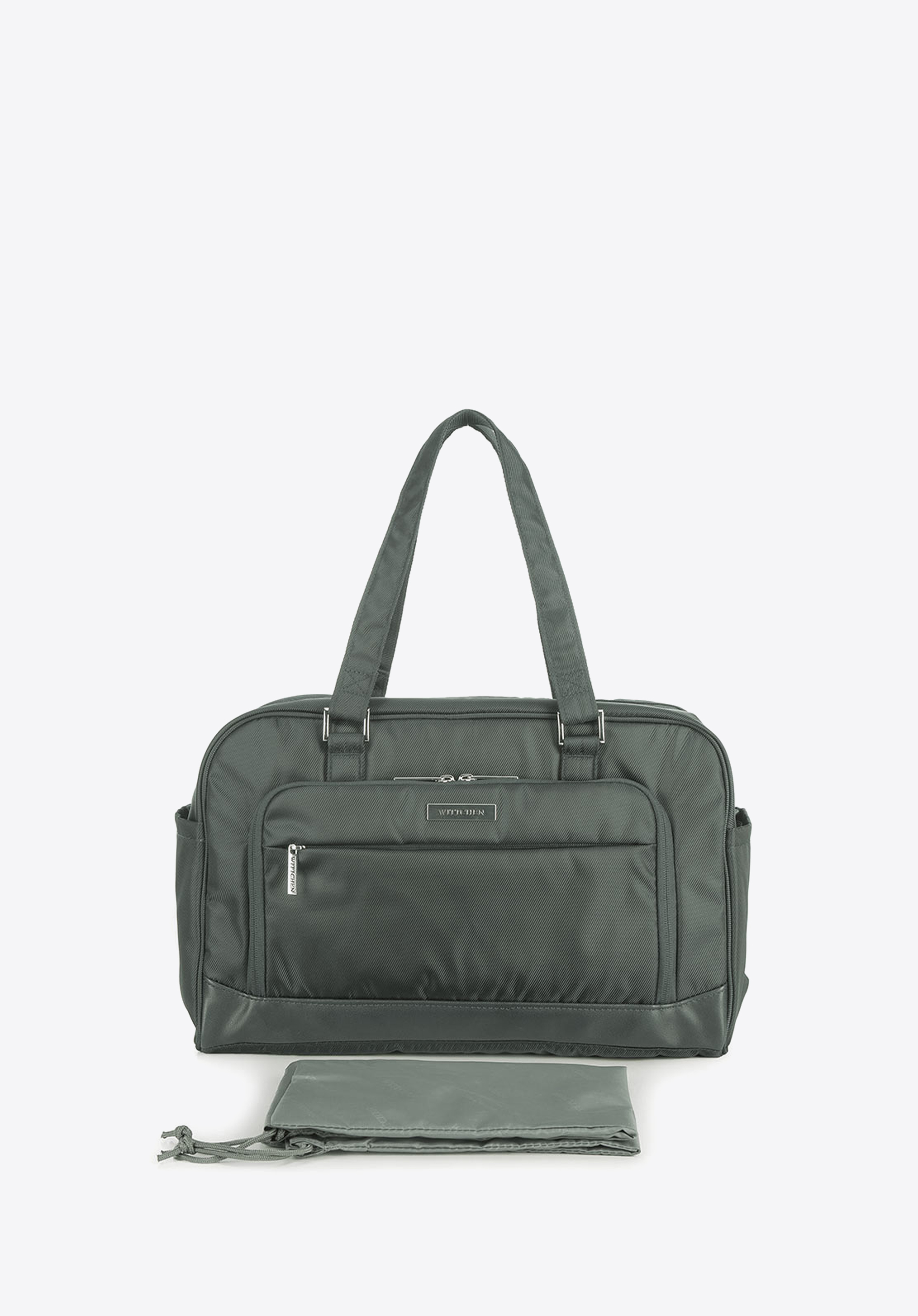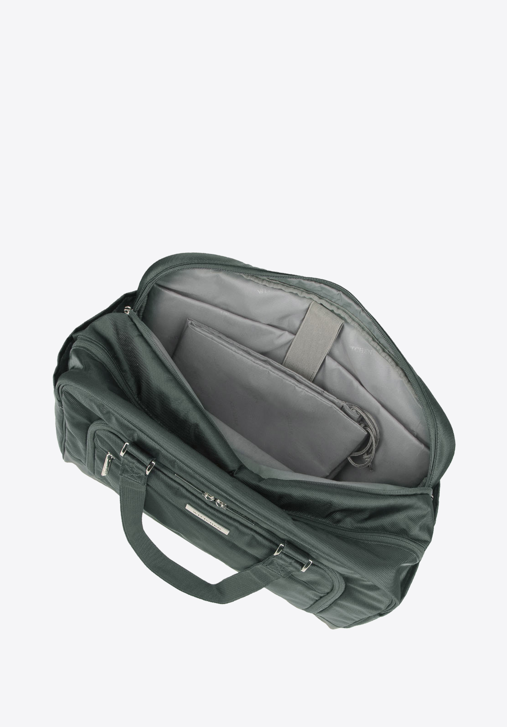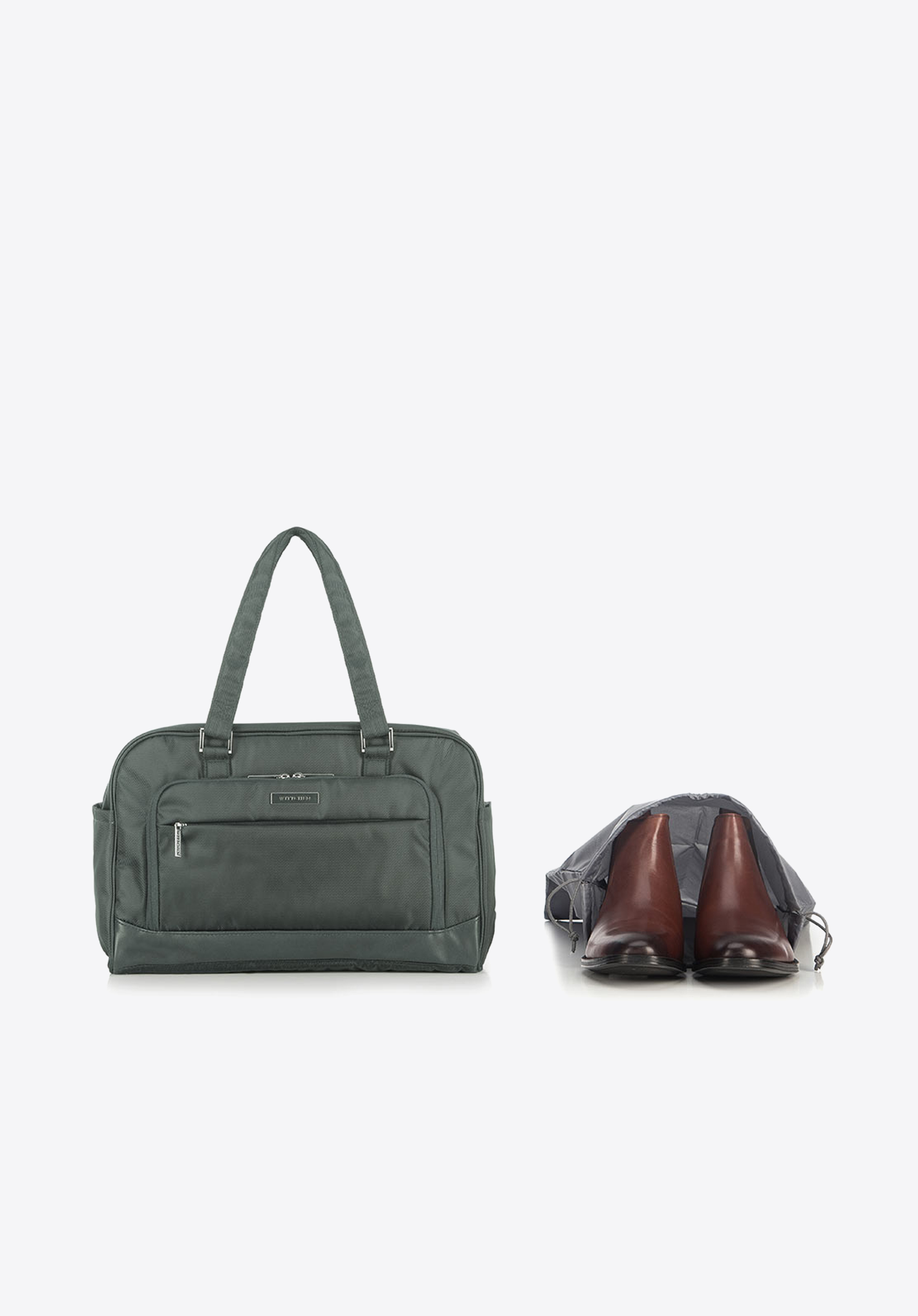 Ez a funkcionális poggyász azért készült, hogy megkönnyítse utazásaidat. Egy különálló, puha bélésű rekeszben maximum 36 x 22 cm méretű elektronikai eszköz szállítható. Ezen kívül a táska egy nagy rekesszel rendelkezik, amibe könnyedén elhelyezheted a hétvégi kiránduláshoz szükséges személyes holmikat. Belül további kiegészítőket találsz: egy húzózsinóros táskát - tökéletes ruhák vagy cipők mosására - és egy levehető átlátszó tasakot. Számos zsebében pedig elférnek a szükséges apróságok. Az egyik külső zseb RFID kártya védelemmel rendelkezik, így pénztárcatartónak is tökéletes lesz. Az enyhe fényű bordázott felület foltálló, és gyorsan megszárad, ha vízzel érintkezik.