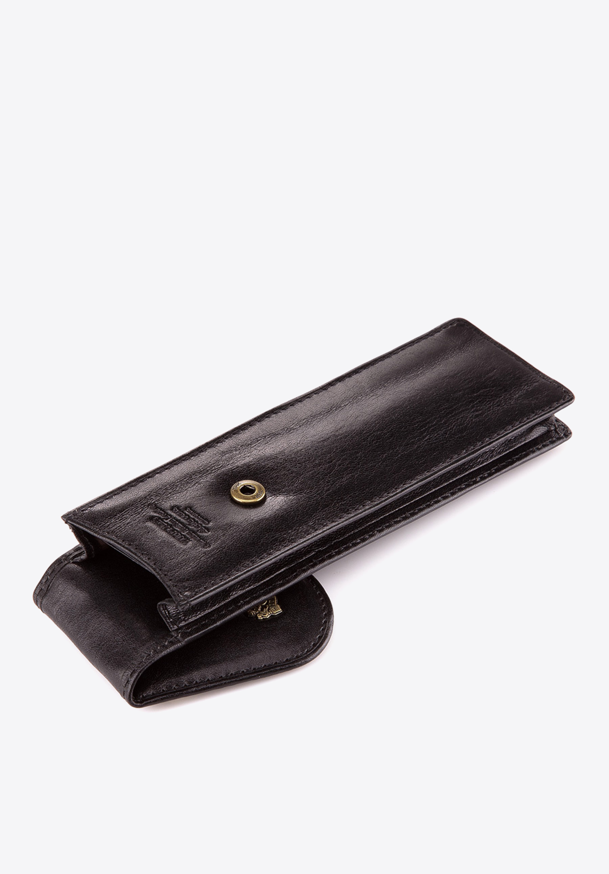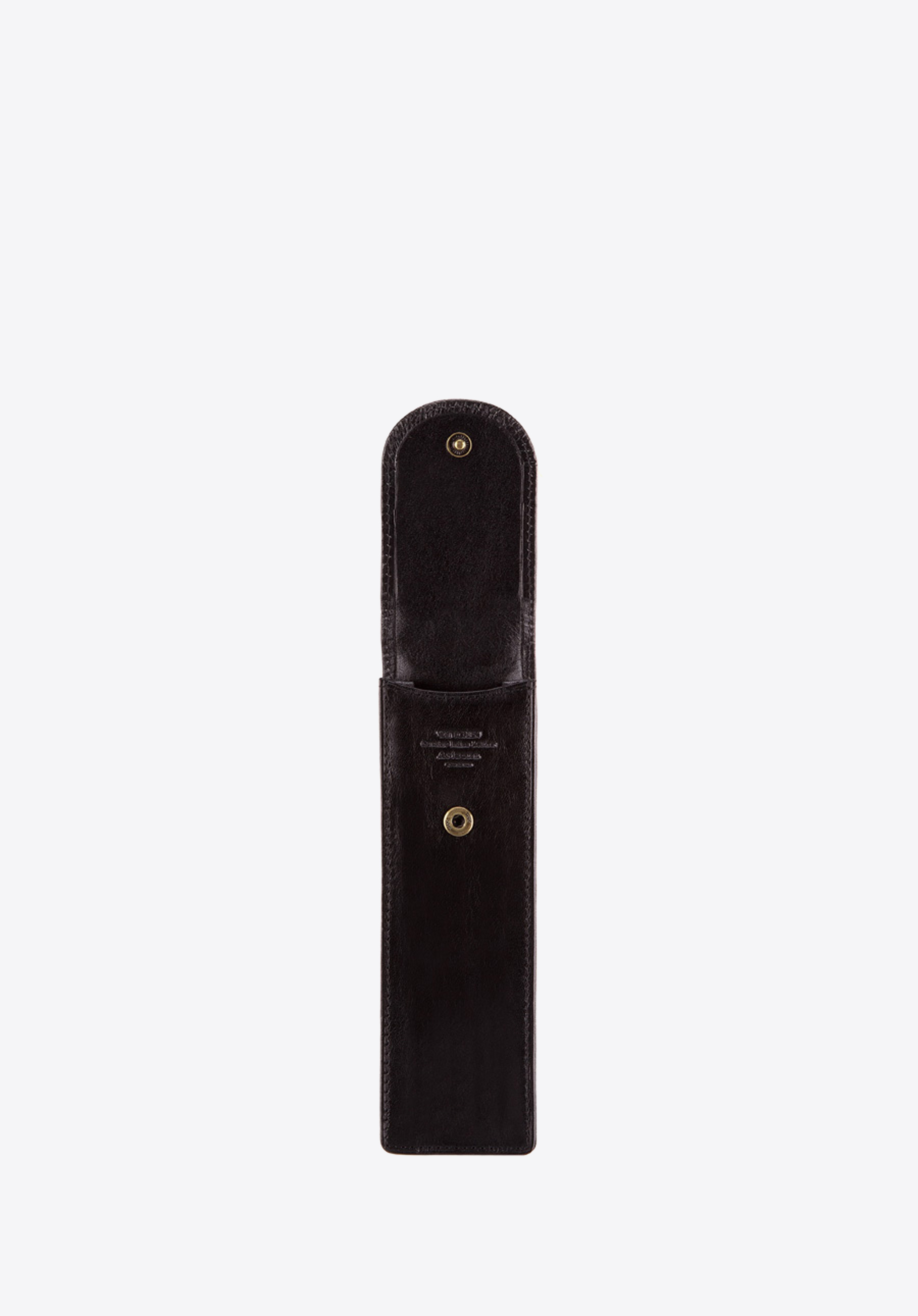 Bőr tolltartó, mely tökéletes védelmet nyújt az írószereknek, kis méretének köszönhetően pedig praktikus és kényelmes. Tolltartó enyhén fénylő borjúbőrből.
