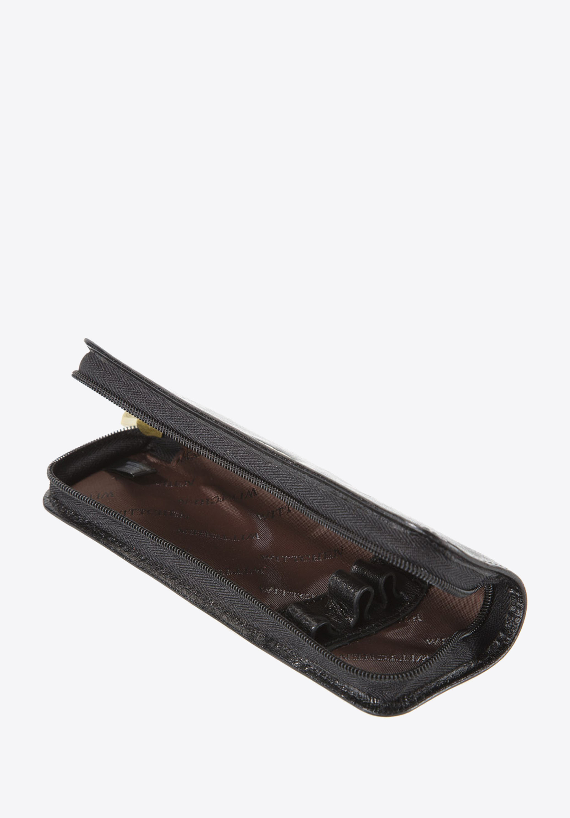 Kis tolltartó nagy szakértelemmel kivitelezve finom fényű szemcsés borjúbőrből, divatos és funkcionális kiegészítő. Tolltartó, mely tökéletes védelmet nyújt az írószereknek, kis méretének köszönhetően pedig rendkívül praktikus és kényelmes.