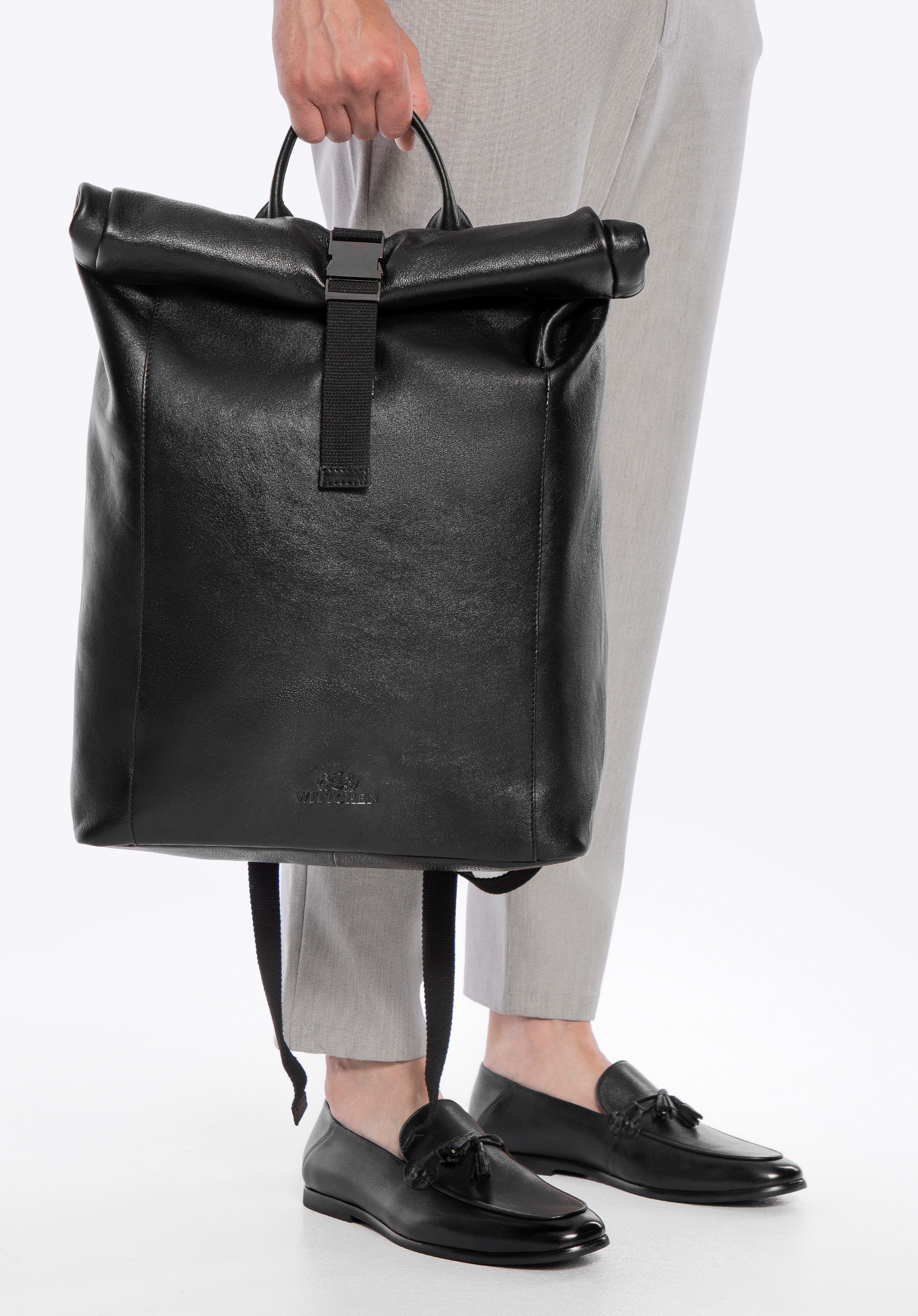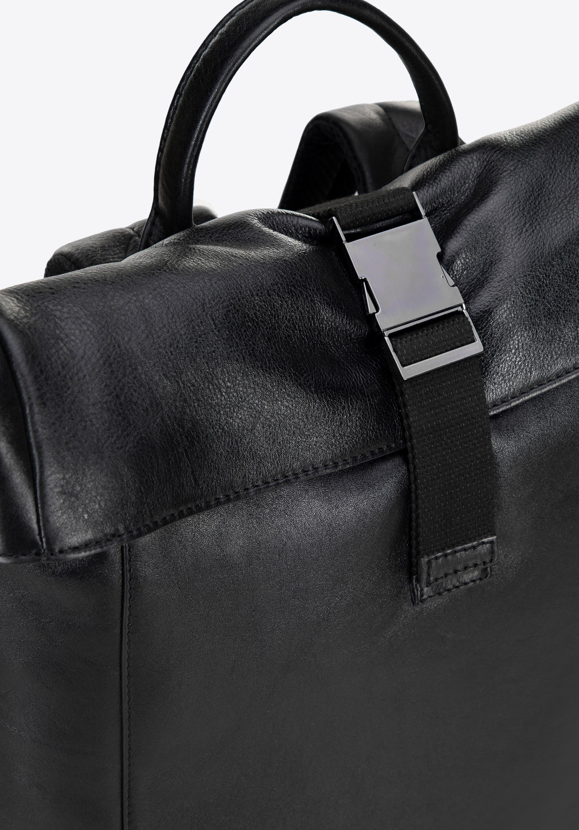 Utazó hátizsák valódi bőrből, 16"-os laptop számára fekete