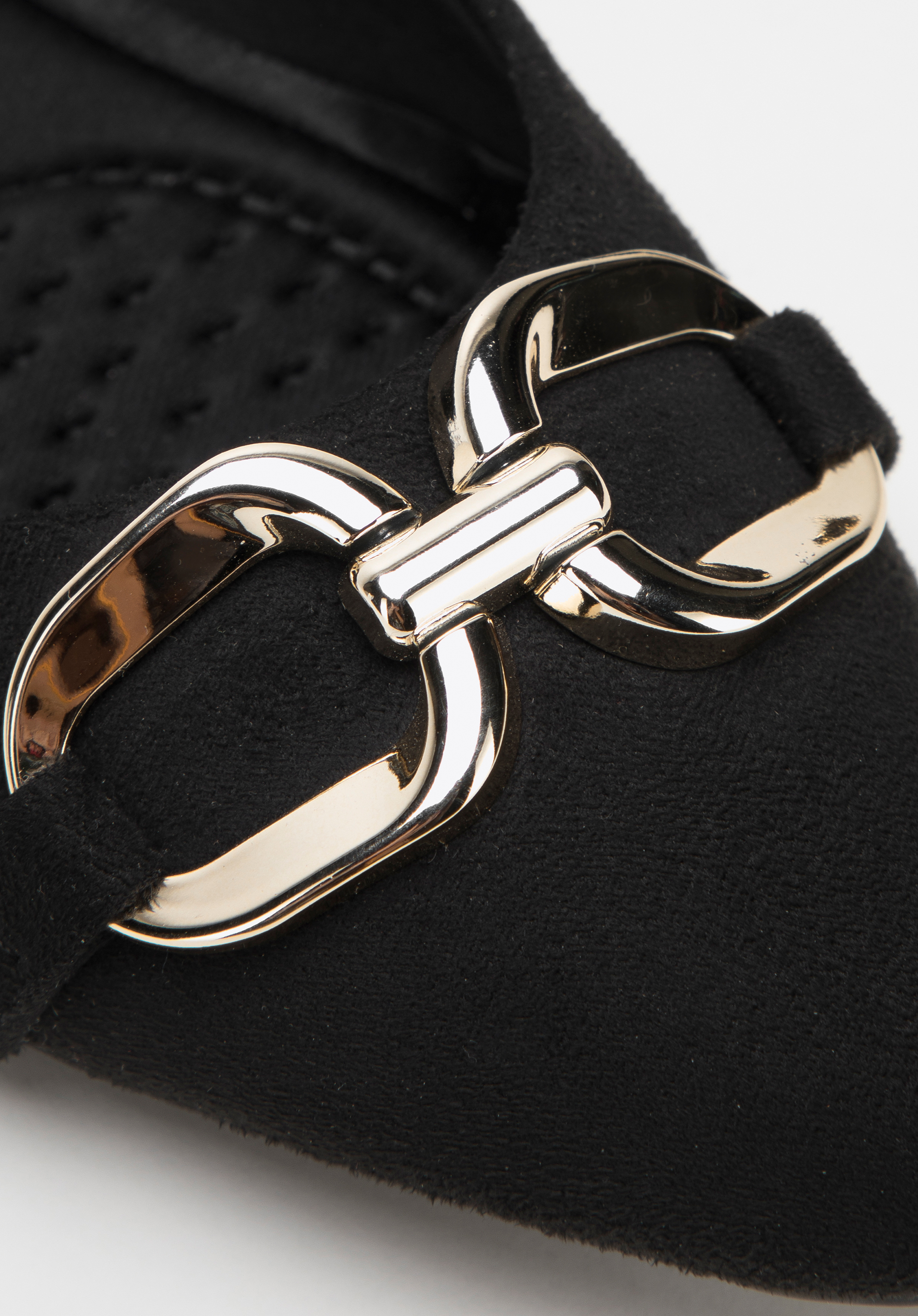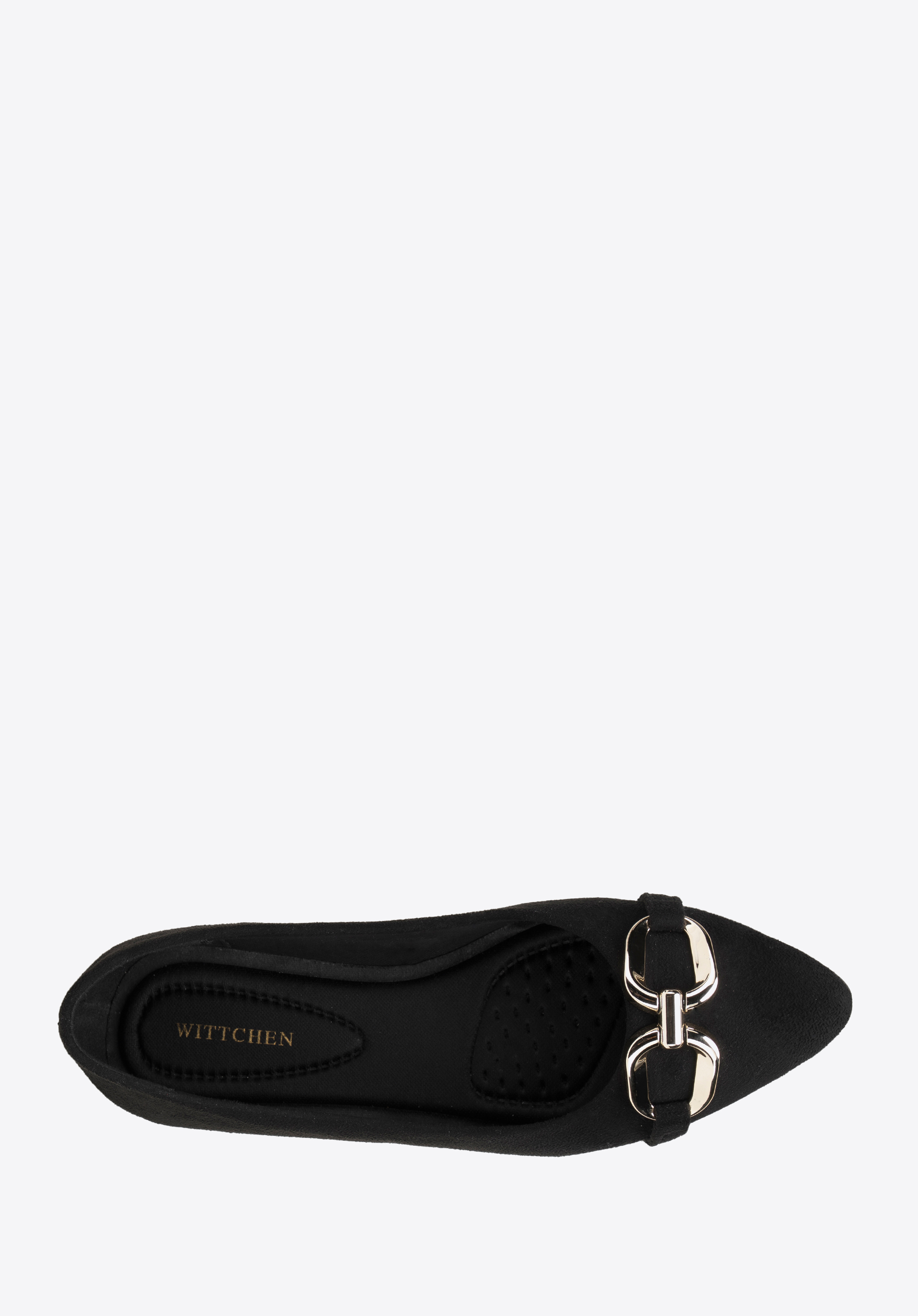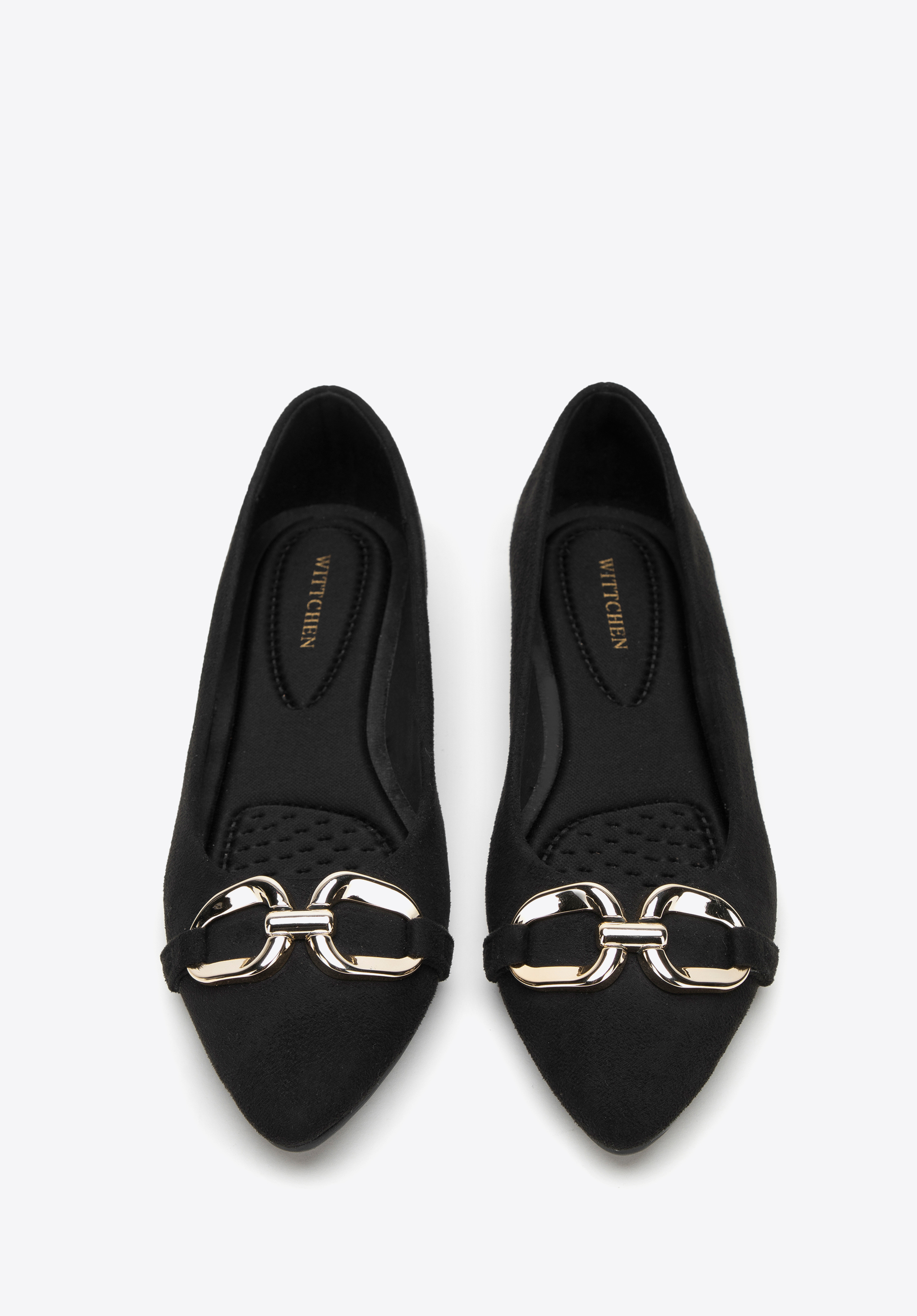 Az elegáns balerinák minden stílusos nő ruhatárának kihagyhatatlan kellékei. Kellemes tapintású a lábfejhez remekül illeszkedő velúr jellegű műbőr anyagból készültek. A puha, kontúros talpbetétnek és az alacsony saroknak köszönhetően akár órákon át sétálhatsz bennük kényelmesen. A csillogó, széles csat változatossá teszi még a legegyszerűbb öltözéked is, a hegyes orrú cipő pedig elegánsan karcsúsítja lábfejed. Viseld kedvenc fekete estélyi ruhádhoz vagy hord farmerrel és bőrdzsekivel - minden helyzetben elegánsan fogsz festeni. A csattal ellátott velúr jellegű műbőr balerina időtálló kiegészítő, akár a mindennapi munkához, akár a színházba, vagy egy elegáns vacsoraestre.
